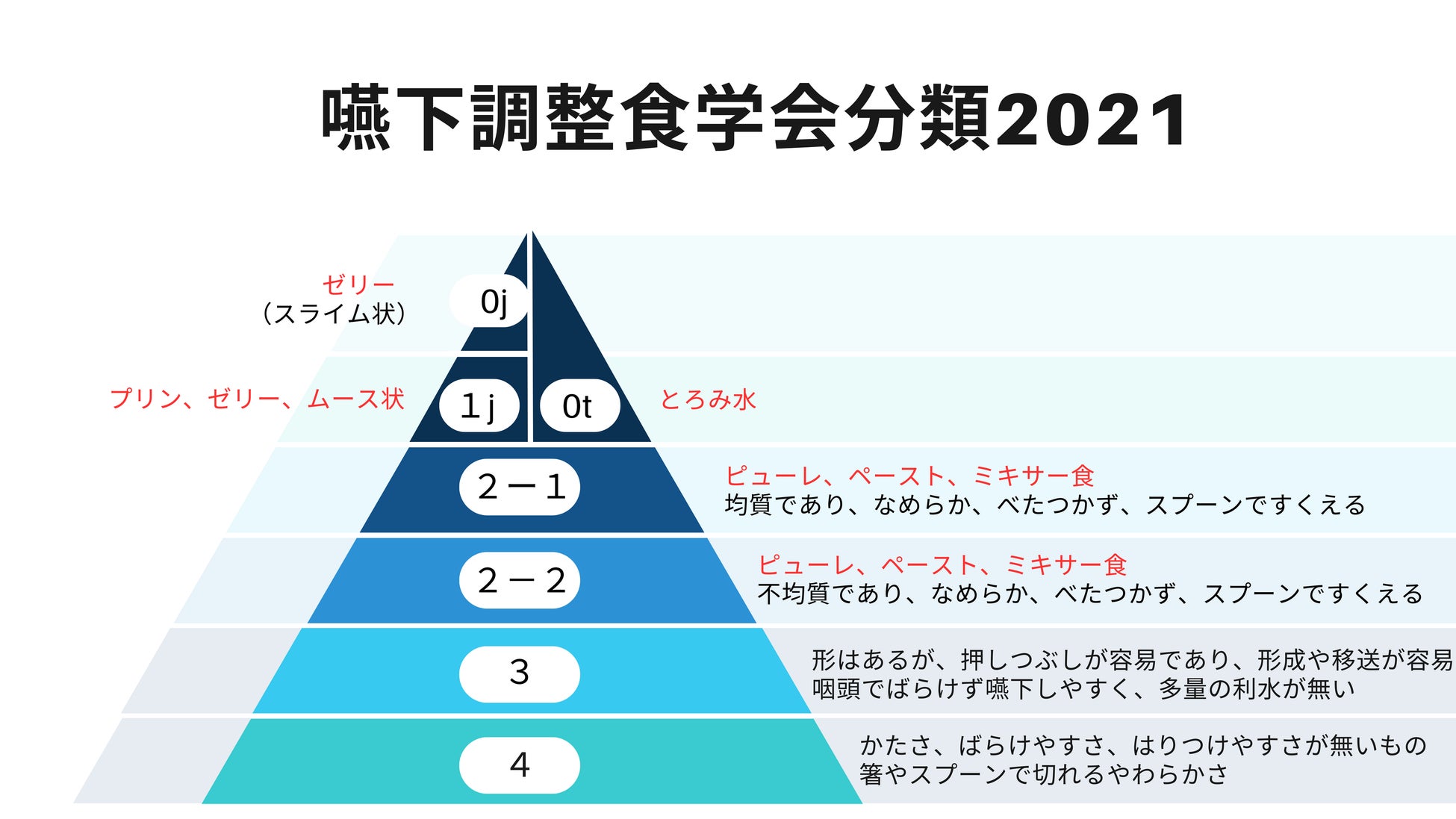 (※1)嚥下食とは、高齢や病気等で飲み込みや咀嚼といった嚥下機能の低下がみられる場合に、その方の嚥下機能に合わせて、飲み込みやすいように形態やとろみ、食塊のまとまりやすさなどを調整した食事のことです。