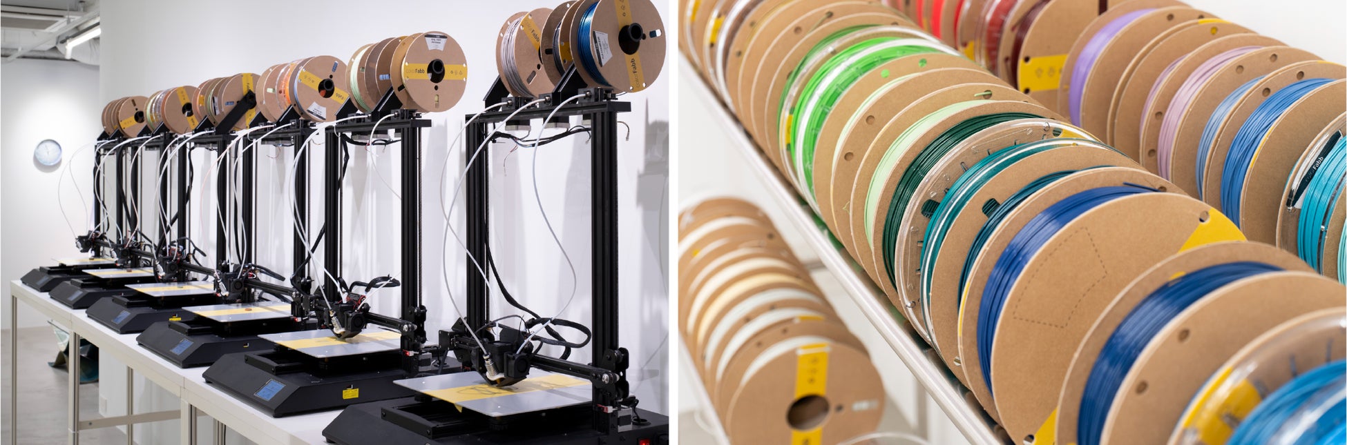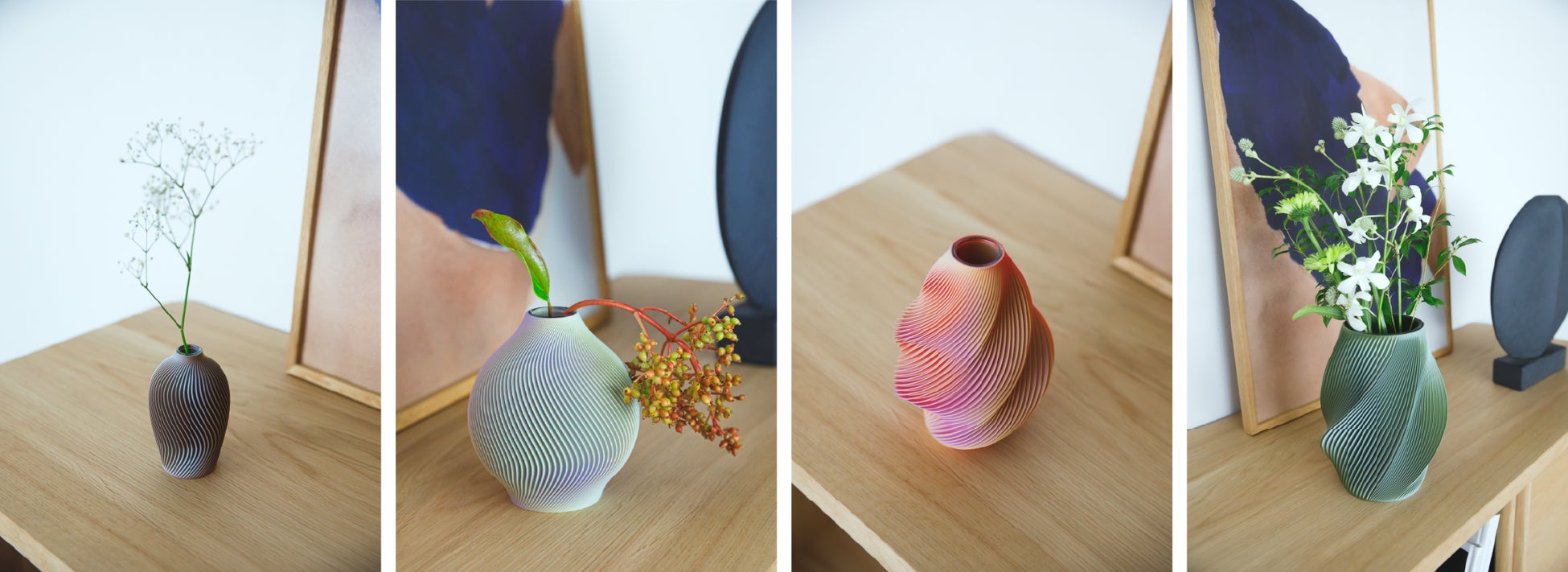 POPUP STORE内には色彩豊かなフラワーベースやアクセサリーの販売をはじめ、3Dプリンターでアイテムを制作する過程をご覧いただけるラボスペースも併設。POPUP STORE限定で、アイテムのカラーカスタマイズも店頭でお受けしております。あなたらしい生活を彩るアイテムをぜひご覧ください。