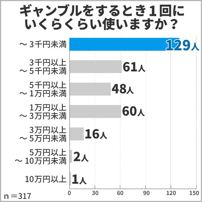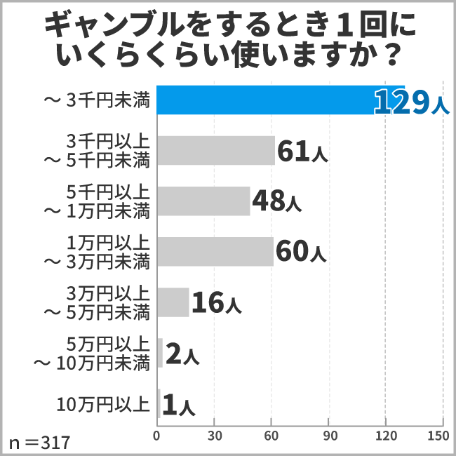 次に、1回いくらくらいギャンブルにつぎ込むのか?について見ていきましょう。