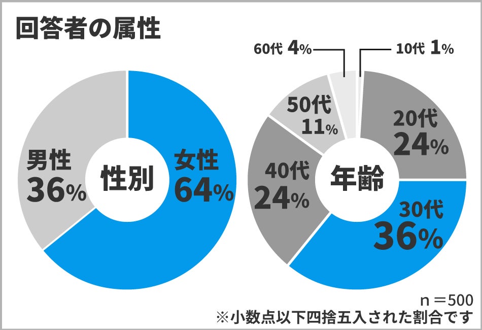 今回アンケートに答えてくれた方の性別、年齢の割合は以下の通りです。