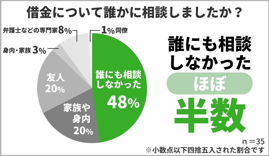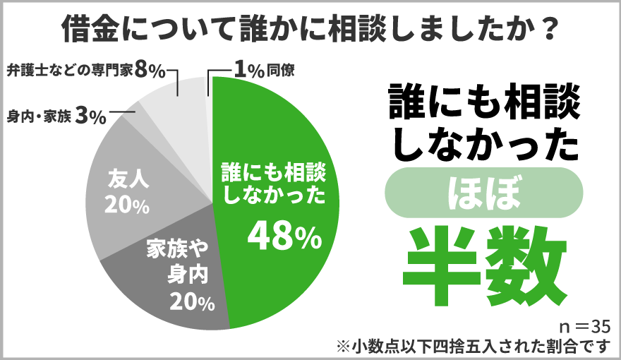 ギャンブルで作ってしまった借金について、誰かに相談したかどうかについても聞いてみました。