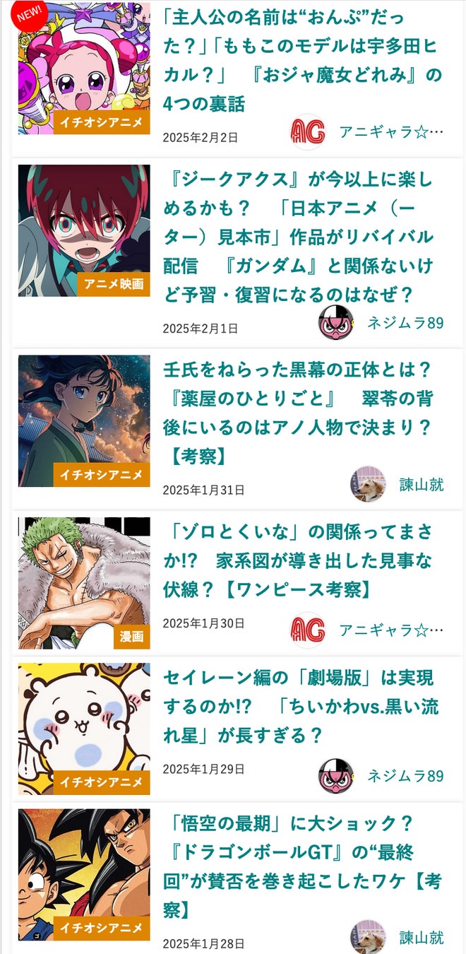 ■2025年1月に読まれた人気のアニメコラム記事5選