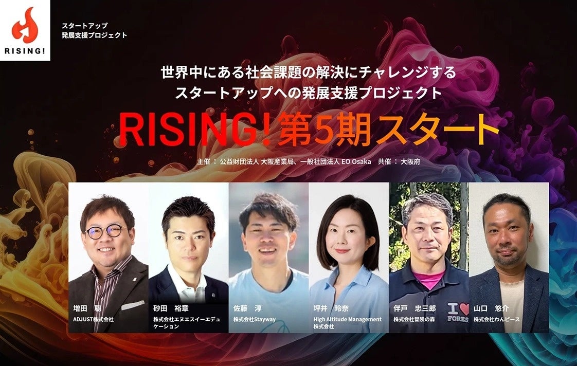 世界の若手起業家によるネットワーク「EO(Entrepreneurs' Organization、起業家機構)」に所属する「EO Osaka(運営:一般社団法人EO ALL KANSAI)」は、世界中にある社会課題の解決にチャレンジするスタートアップへの発展支援プロジェクトの第5期となる「RISING! 5.0」を9月22日より開始いたします。
