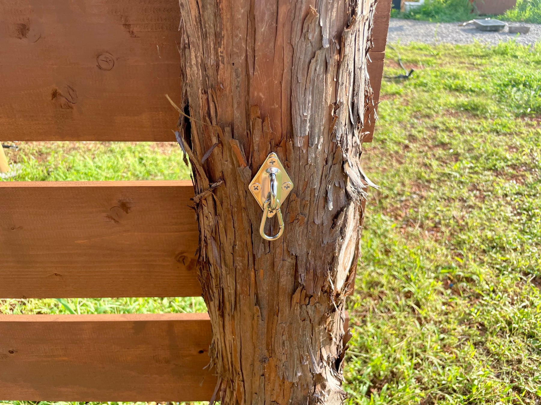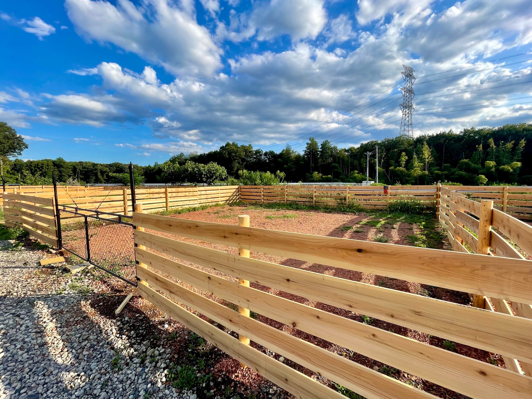 天然木の柵で囲まれた、愛犬と一緒にキャンプを楽しめる専用スペースを提供。他のキャンパーからの視線を気にせずに愛犬との時間を満喫できます。
