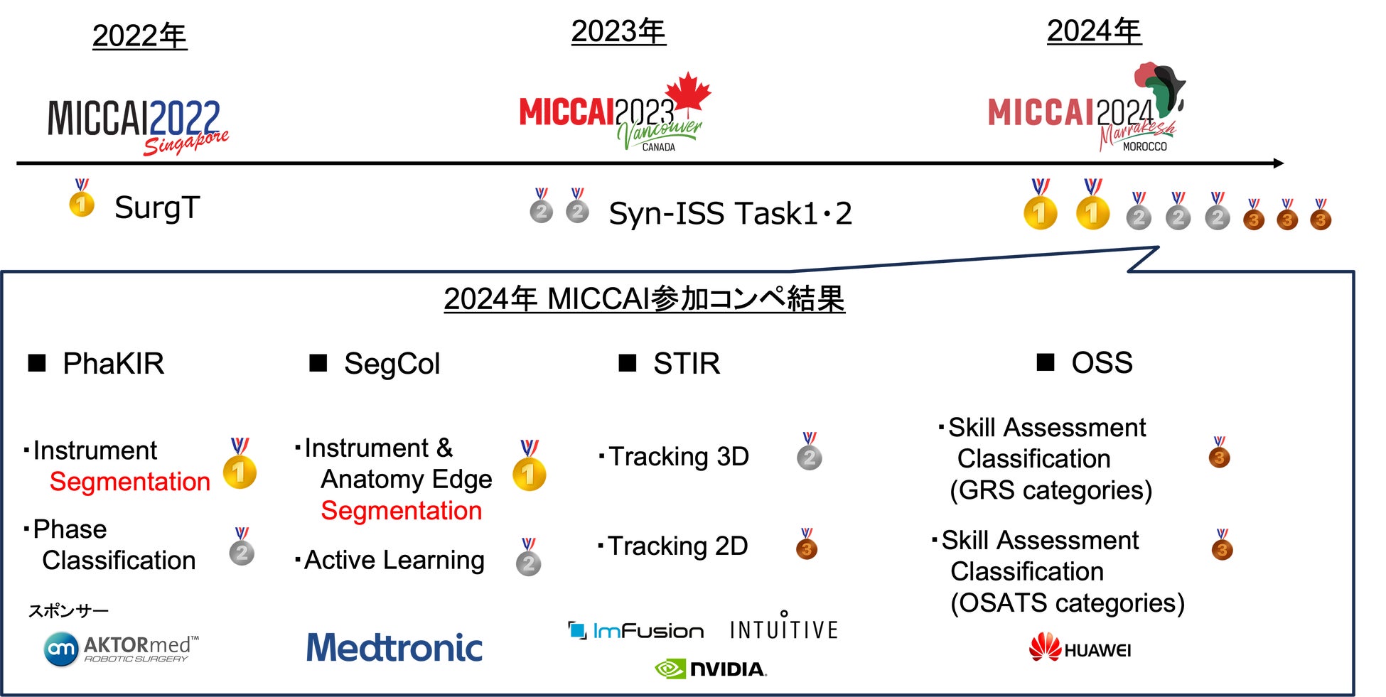 株式会社Jmeesは医用画像の世界的トップカンファレンスMICCAIの画像認識コンペティションにおいて、1位を2つ含む8タスクすべてで3位以内に入賞しました。