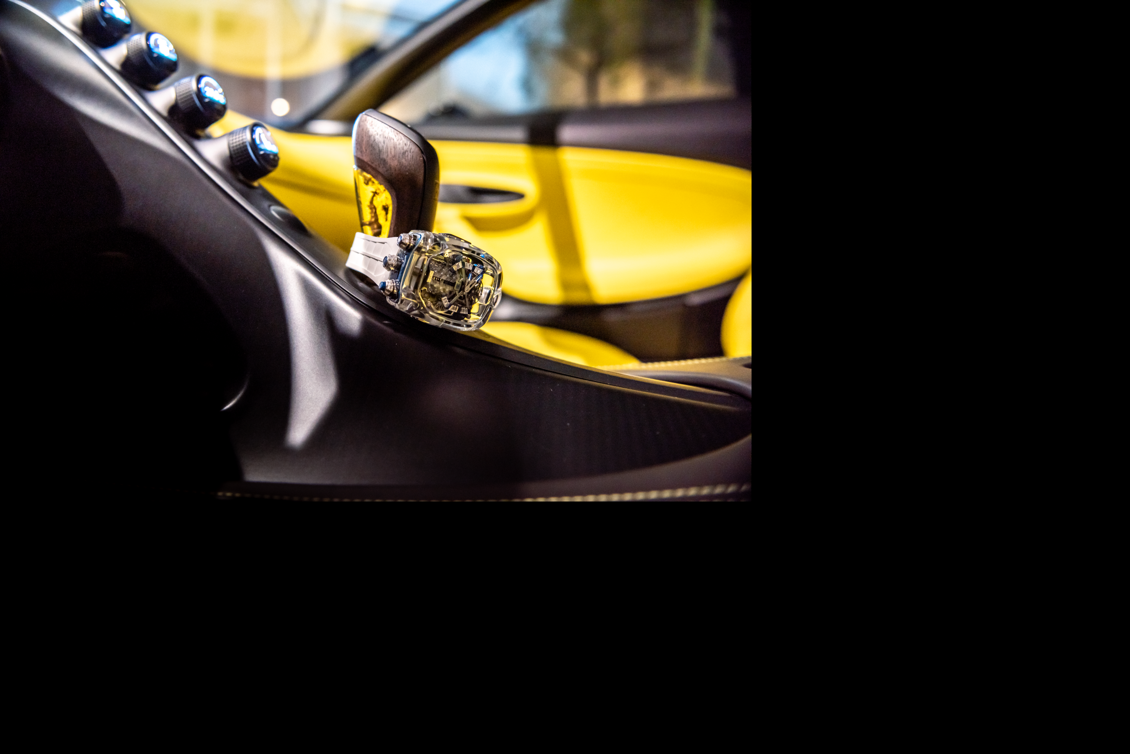 また、日本初披露された午後のイベントでは、ブガッティとコラボした、Jacob & Co.(以下、ジェイコブ)の高級時計も展示。W16エンジンの動きを再現した複雑機構を搭載した「ブガッティ シロン トゥールビヨン」などが並んだ。