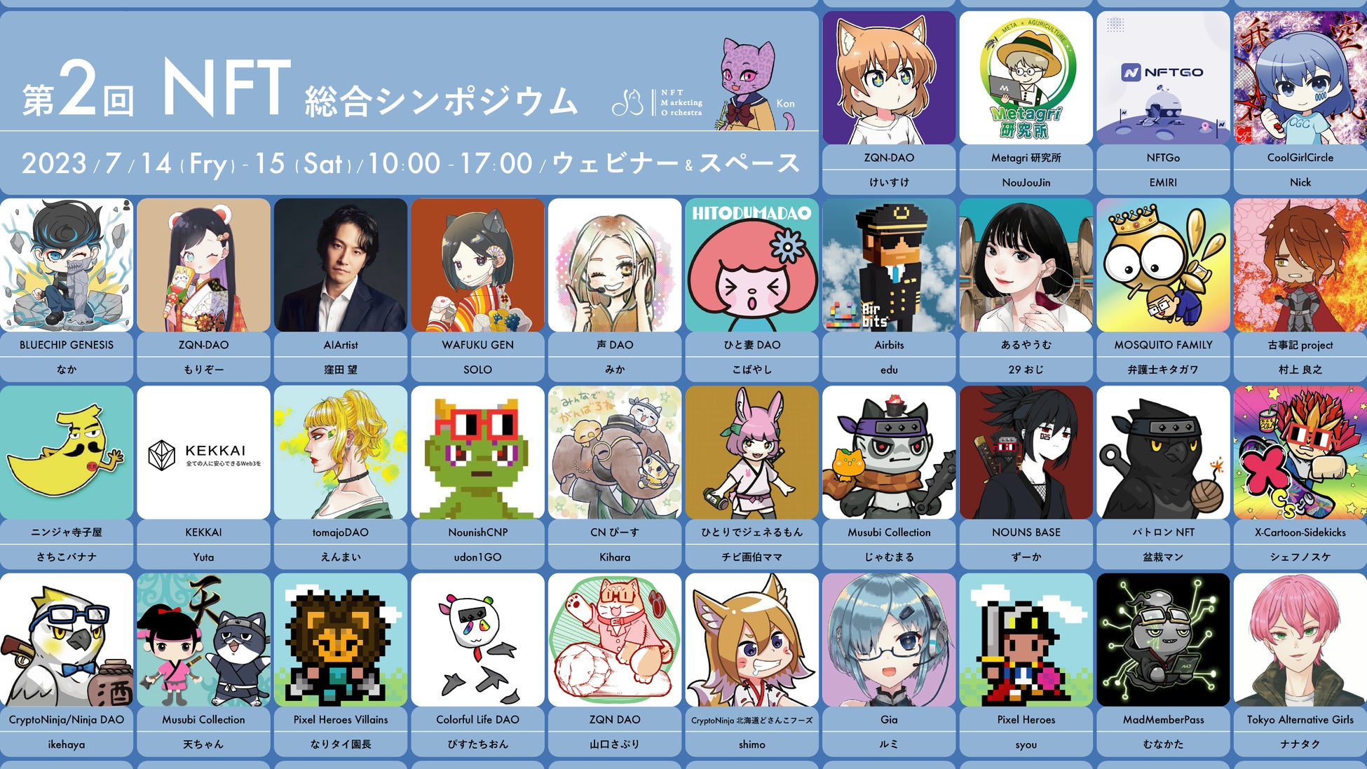 合同会社NFTオーケストラ(本社:東京都中央区)は、2023年7月14日(金)・15日(土)の2日間に渡り、国内NFTプロジェクトを集めた総合シンポジウムを開催いたします。