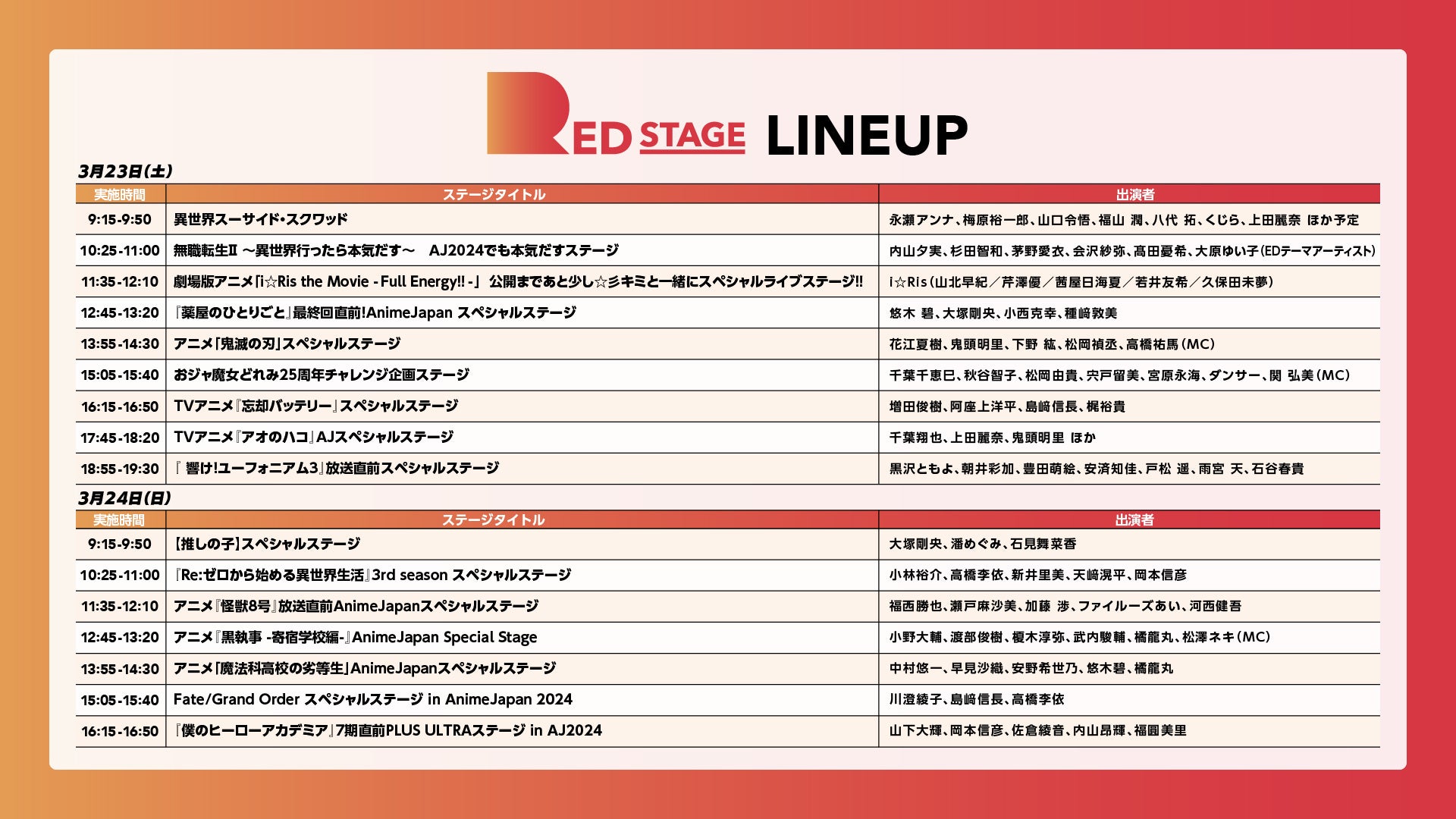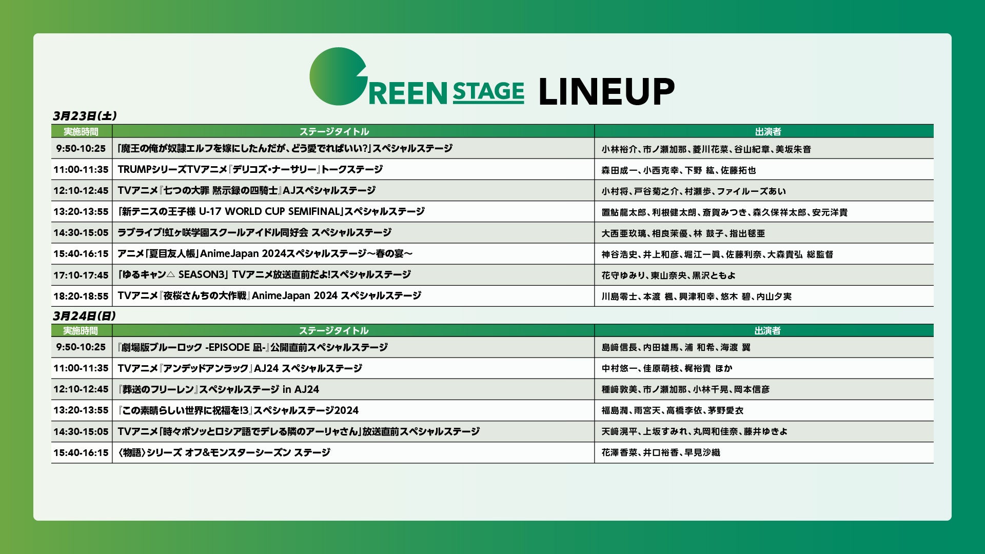 誰もが知る人気作品から注目の新作がRED STAGE、GREEN STAGE、BLUE STAGEの3つのステージに勢揃い!