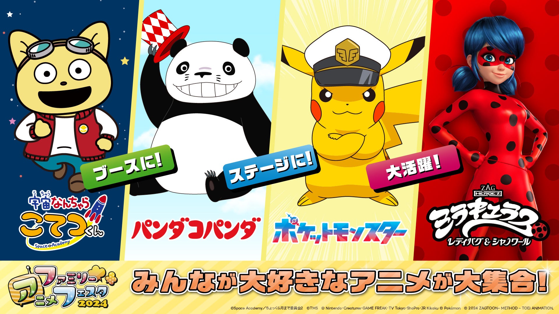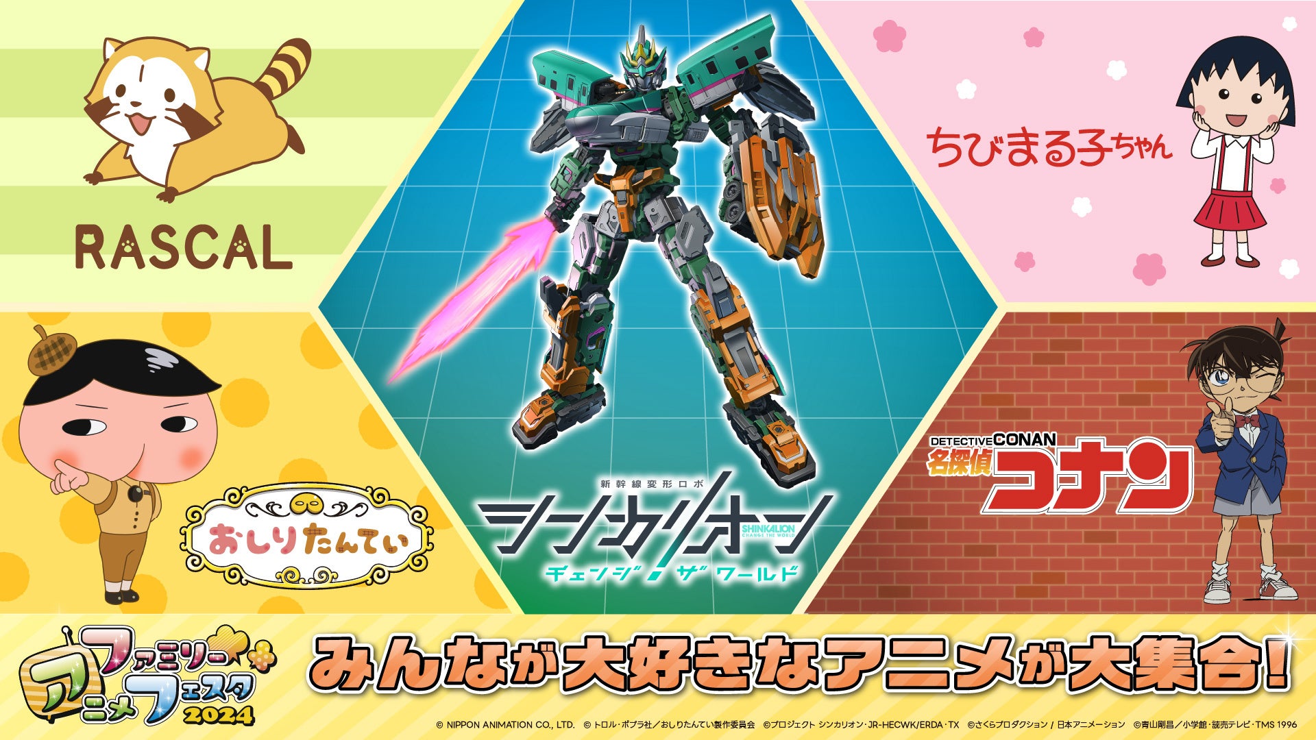 先に発表した、テレビアニメ「ポケットモンスター」や「宇宙なんちゃら こてつくん」などの4作品に加え、新たに「シンカリオン チェンジ ザ ワールド」「名探偵コナン」などの人気5作品の参加を発表!追加の参加作品やステージ情報など、今後もまだまだ最新情報の発表を予定しております。