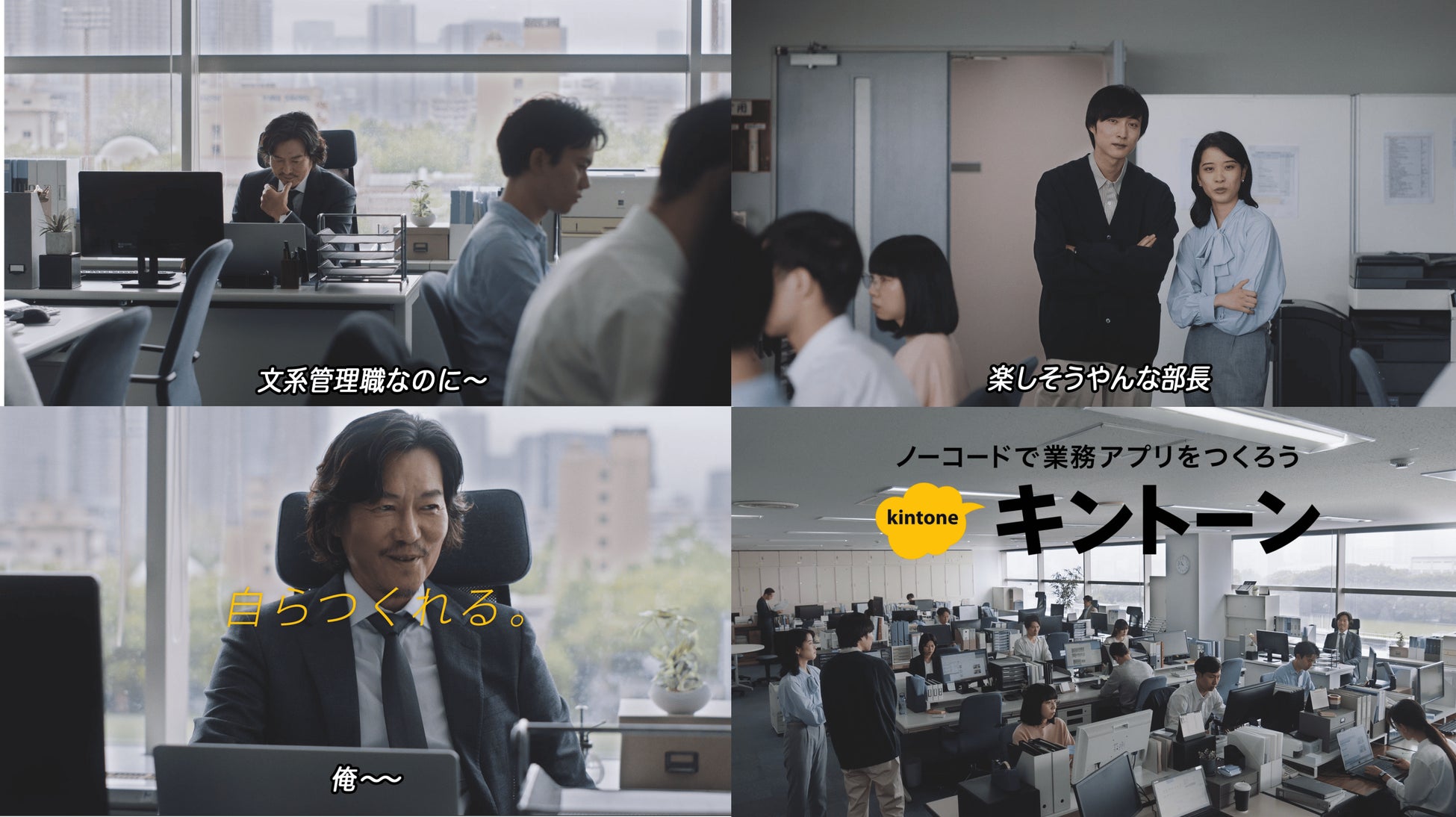 製品「キントーン」。仕事で使うアプリを「自分でつくる」と、それは「楽しい」&「業務フローをよくできる」というポイントを、一見、自分でアプリなどつくらなそうな文系出身管理職リーダーとして「豊川悦司さん」をCMキャラクターに起用しターゲットの「自分でつくるのは楽しいことなのかもしれない」という好奇心を刺激。意外性を生む「キントーン」ならではの本質的な価値訴求を行い、世の中のDXブームに追随しながら新たなポジショニングと独自の立ち位置を構築。更なる市場の開拓を図っています。そして、このテレビCMを中心としたプロモーション展開により、キントーンの製品認知度・浸透度、そして、単一製品での売上も、右肩上がりの高い成長を収めました。