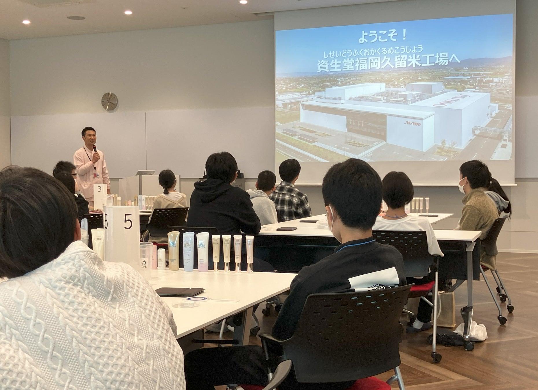 2.資生堂のリソースを活用した子ども達へのキャリア支援として「みらいファクトリー」を実施。社会的養護のもとで暮らす中学生に資生堂福岡久留米工場の見学や体験、資生堂ジャパンによる身だしなみ講座を通じ、工場や化粧品販売における様々な仕事について知る機会を提供しました。