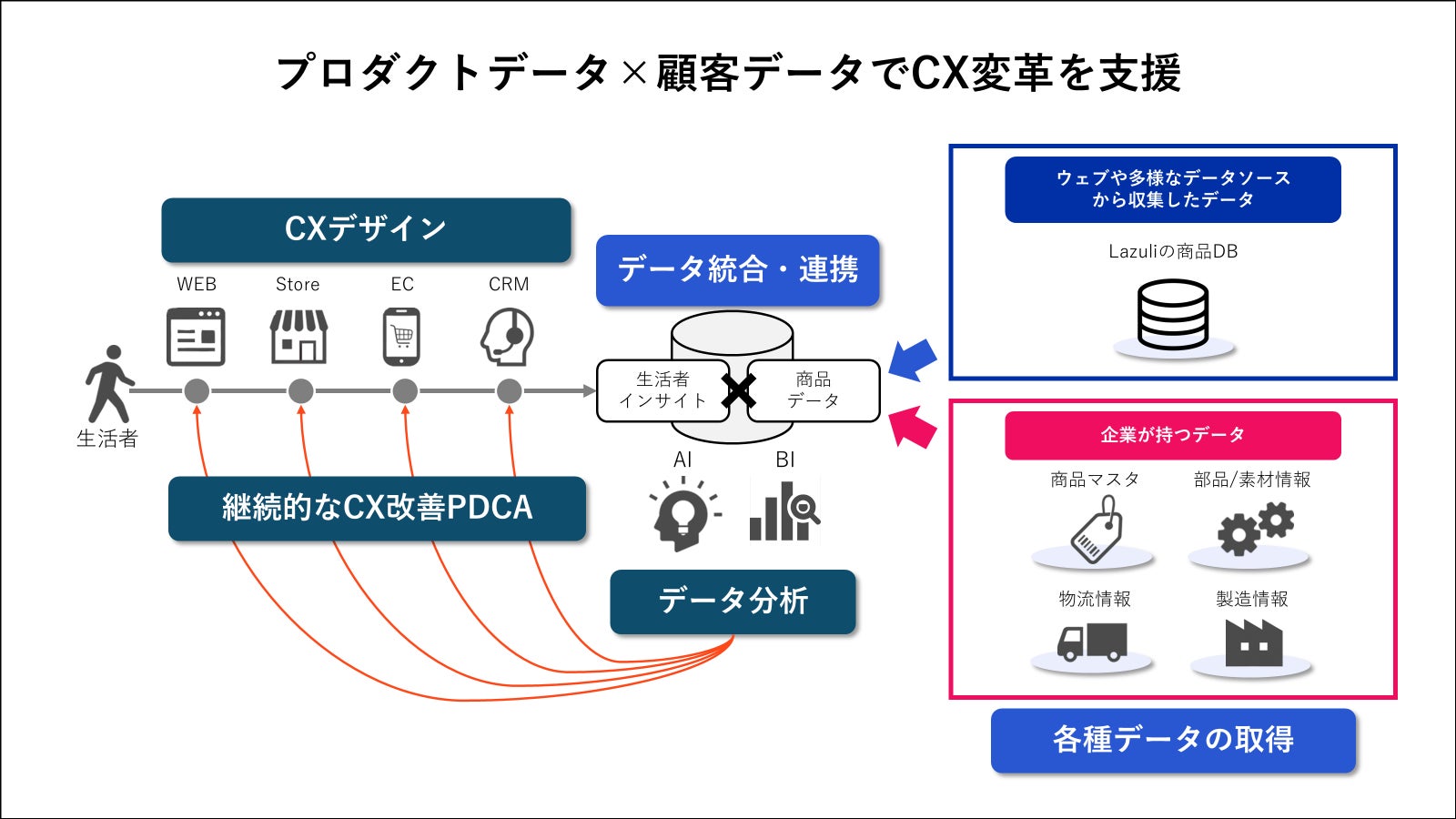 一方、Lazuliは、2020年7月に設立以来、高度なAI技術を駆使し、クラウドサービスとして、DXやEC、マーケティングの担当者など、ビジネスに関わる誰もが世界中の商品情報を利用できるSaaS「Lazuli PDP」の開発・提供をはじめとし、企業のデータ活用支援を進めており、国内大手企業への導入が進んでいます。