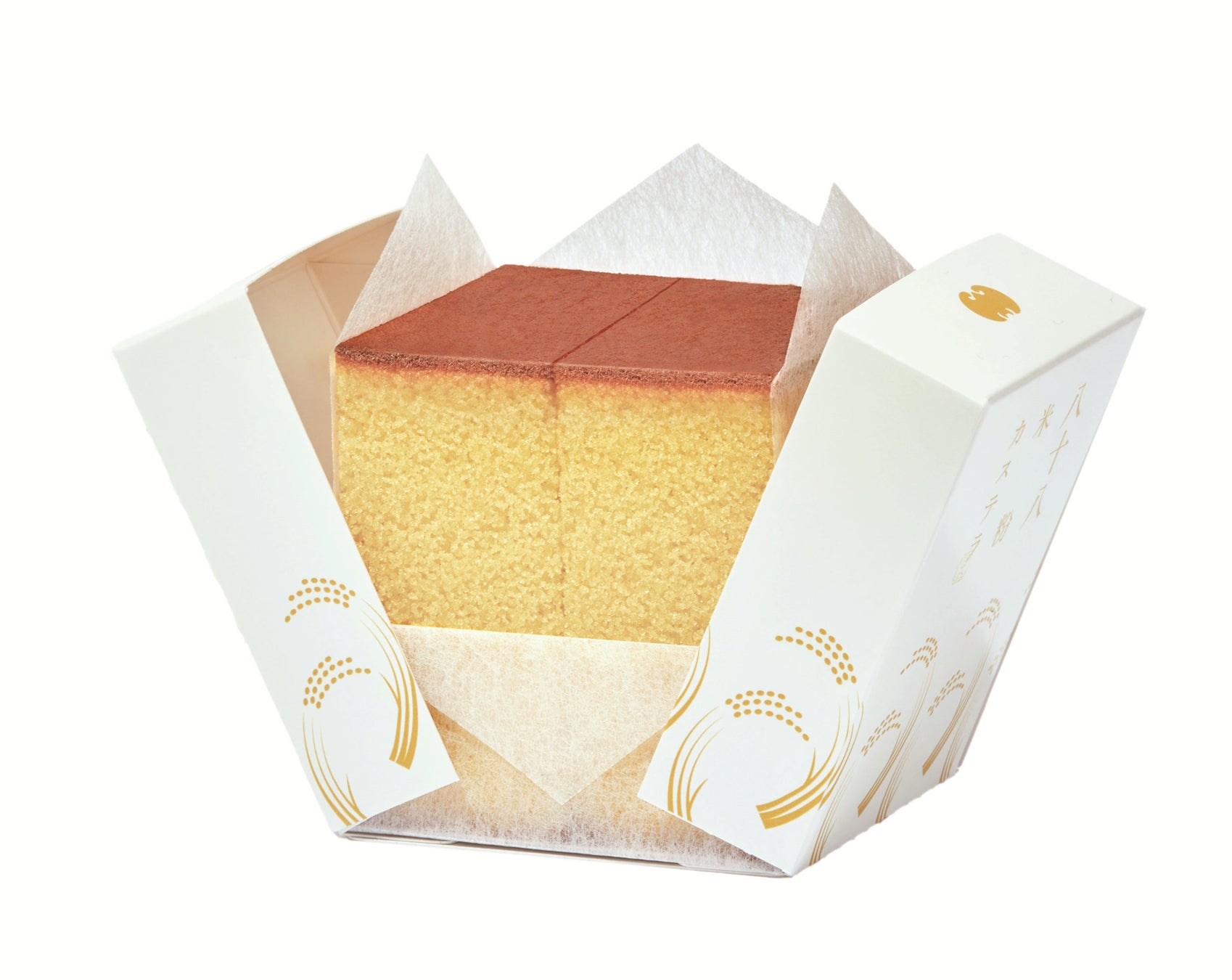 米粉の特徴であるふっくらした食感を引き出すための研究を重ねました。泡立て、生地の見極めなど、全てカステラ職人の伝来の製法をベースに、食感・くちどけの良さにこだわりました。素材を最大限に引き出す製法を構築し、ようやく完成しました。