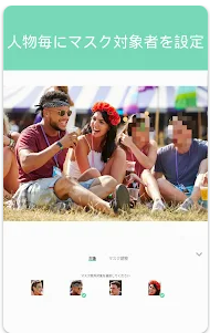 動画・画像内に映りこむ全ての人の顔に対してぼかし加工を行うことはもちろん、ぼかし加工を行いたくない人がいれば、アプリ内のプレビュー画面でぼかし加工を行いたくない人を選択することで、選択した人の顔に対してはぼかし加工を行わないようにすることが可能です。