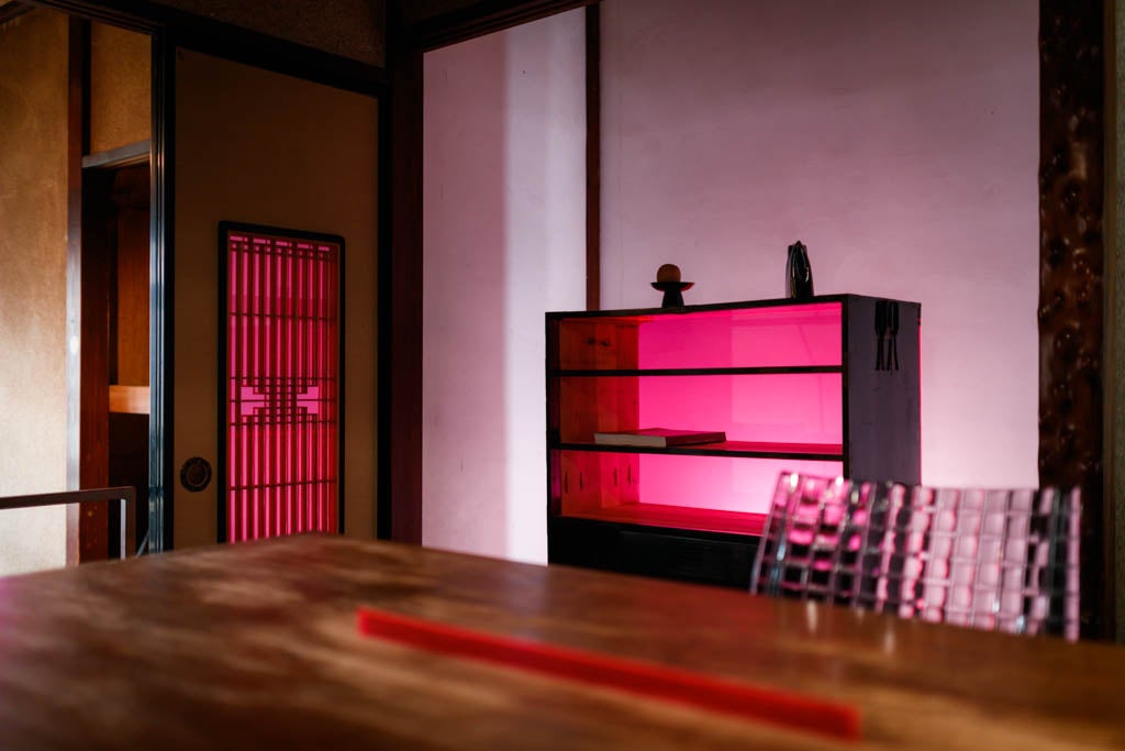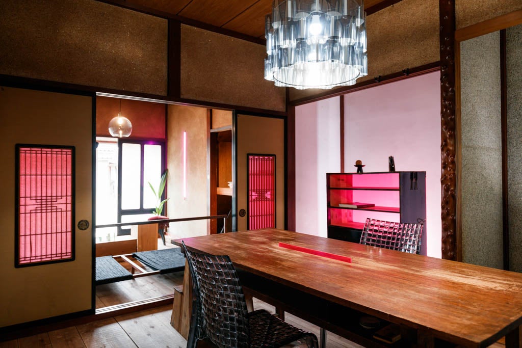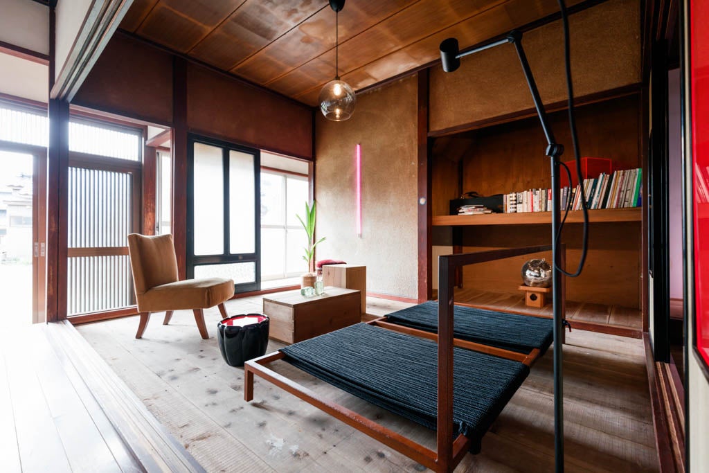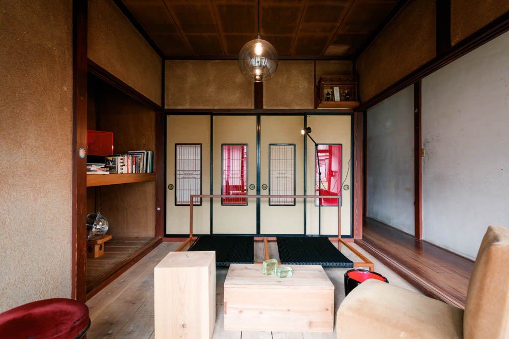 写真にある空き家の空間デザインは、新品で購入したモノが1割、9割アップサイクル、リユース品でコーディネートされています。空間づくりにアートの要素もいれ、アーティストとのコラボレーションも行います。