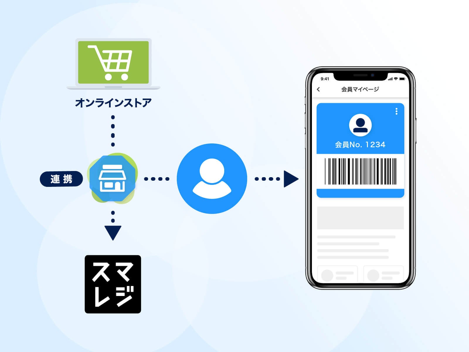 Shopifyとスマレジ間で顧客情報を連携し、会員証を作成。スマレジ上で発生した会員の購買履歴も、自動的にShopifyに連携されます。店舗とECでのポイント一元化も実現可能。