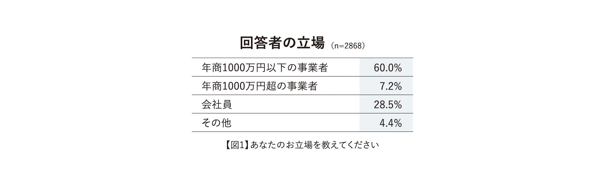 ・年商1000万円以下の事業者が6割、会社員は約3割(図1)