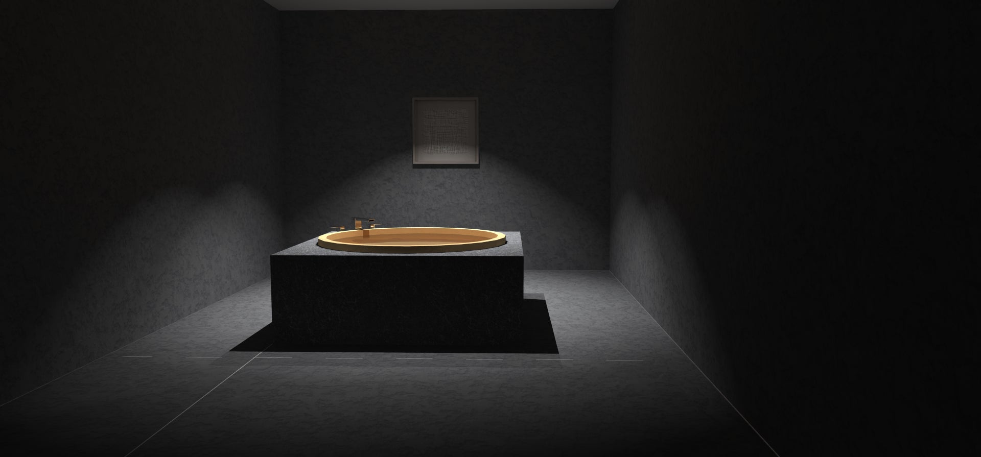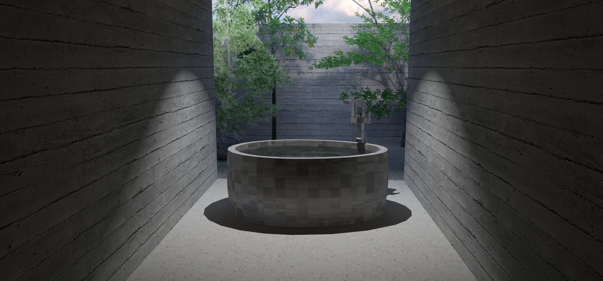 ・en-sou:正方のステージの中に円形の浴槽を配置。