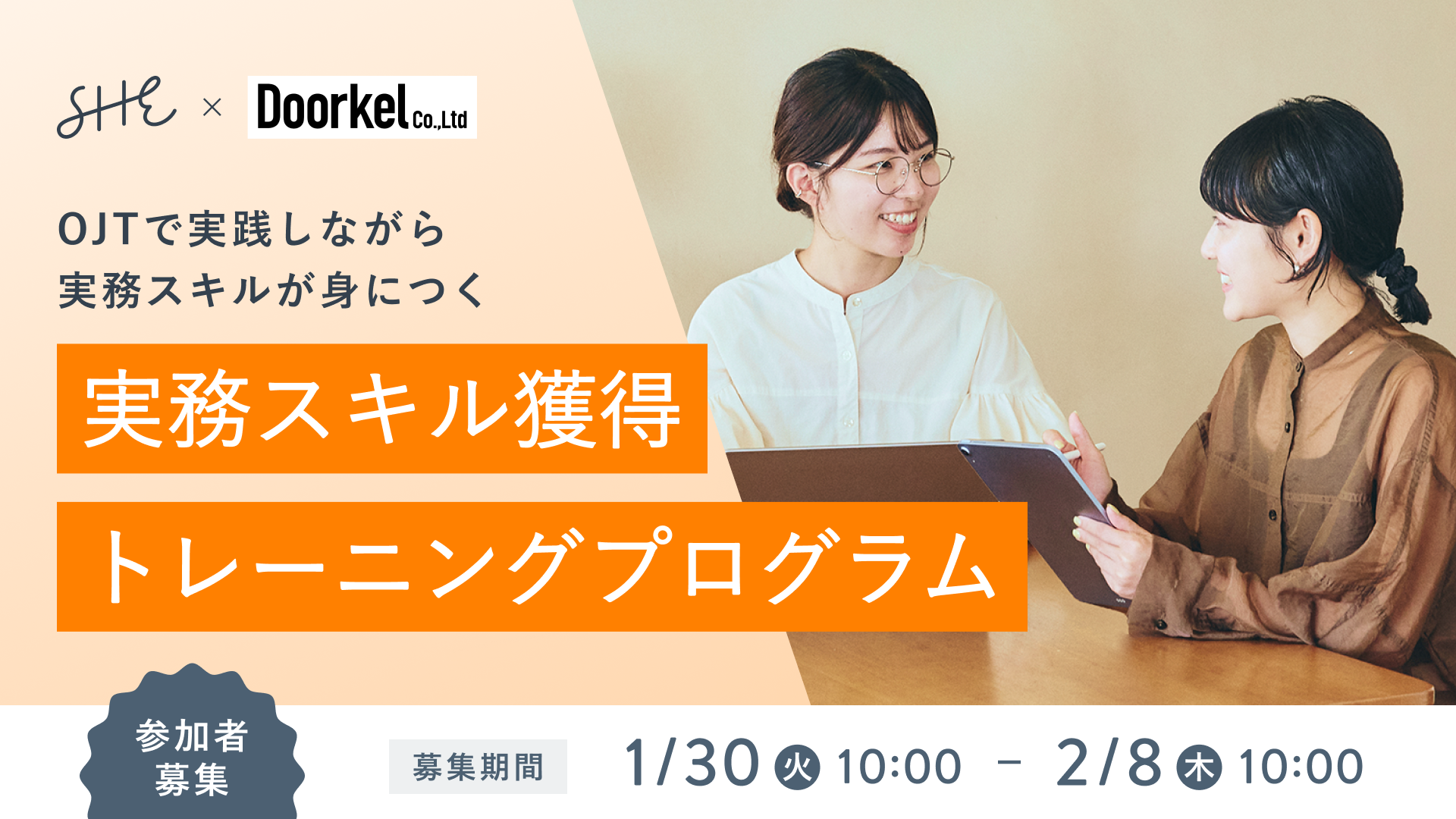 DoorkelとSHEが共同でキャリアチェンジの課題「実務経験不足」をサポートするトレーニングを実施します。
