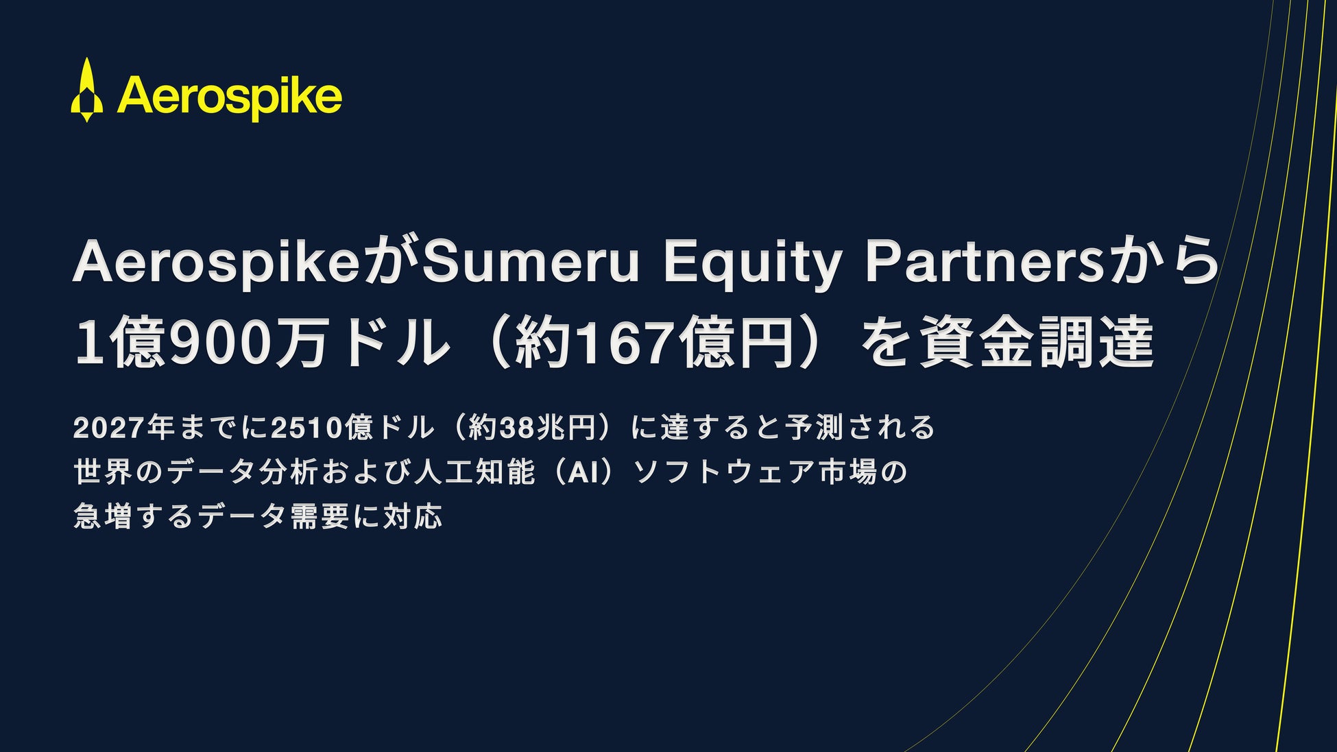 Aerospike, Inc.(以下「Aerospike」)は本日、Sumeru Equity Partners(以下「Sumeru」)からの1億900万ドル(約167億円)の資金調達および既存投資家Alsop Louie Partnersから追加投資を受けたことを発表しました。これは、同社の製品力と業績が評価されたことを意味します。