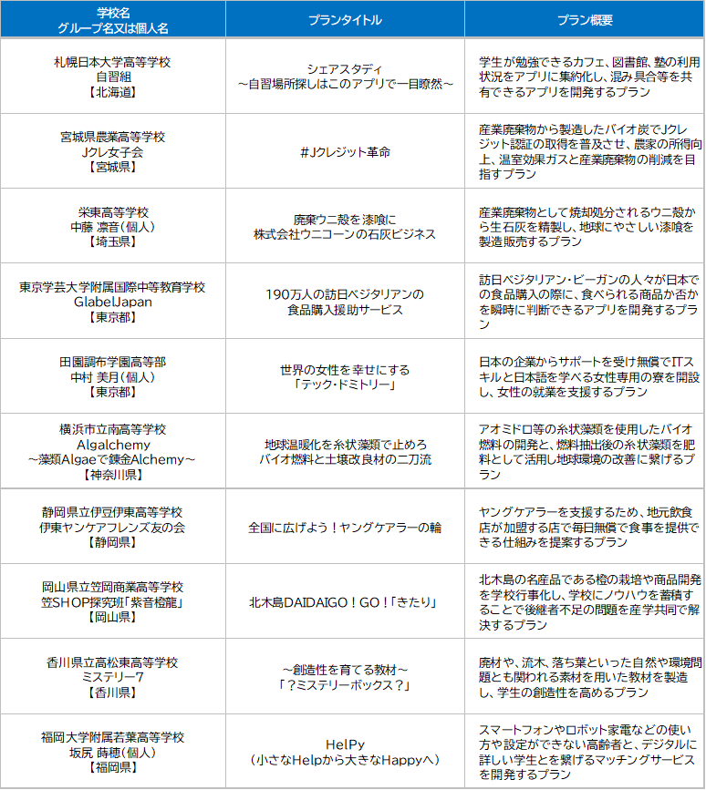 第11回「高校生ビジネスプラン・グランプリ」のファイナリスト10組を決定