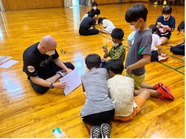 1の取り組みに加えて、ネイティブ講師と一緒に体を動かしながらアウトプット型の英語学習に取り組むプログラムです。