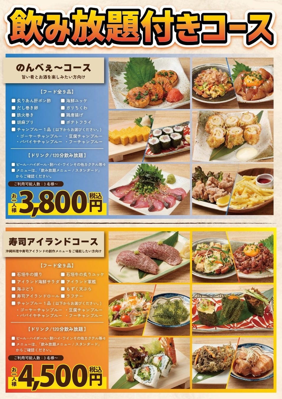 沖縄料理や寿司アイランドの創作メニューをご堪能したい方向け◎お一人様4500円(税込)