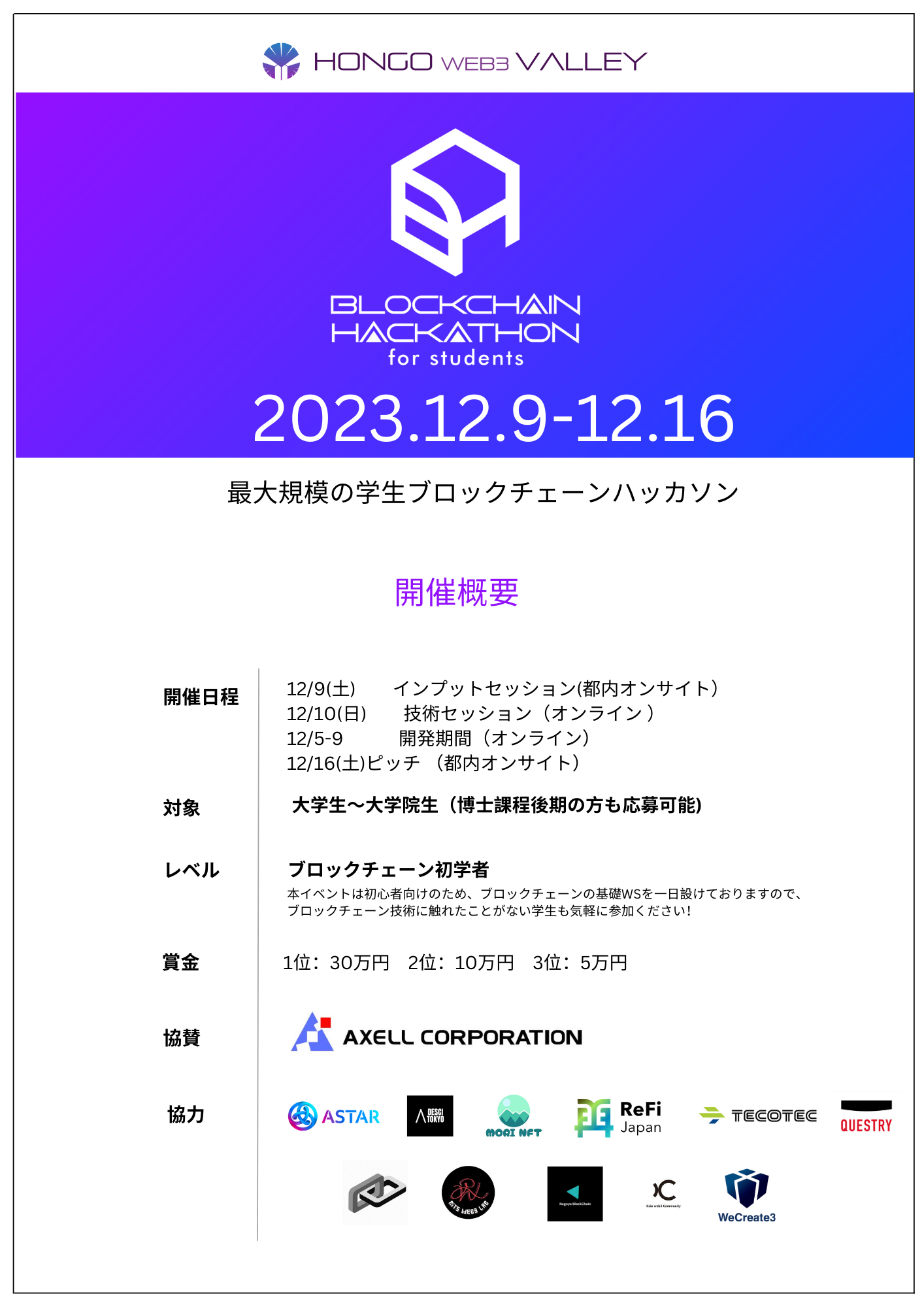 <※1>当社調べ「現役東大生が主催するブロックチェーンハッカソン」として(2023年11月)