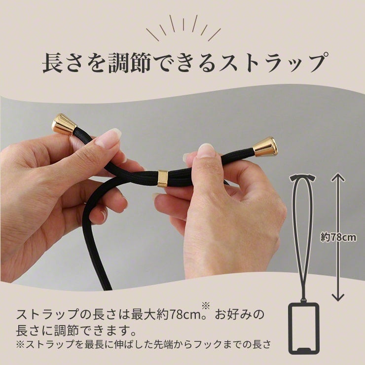 長さ調節可能なストラップだから好みのスタイルで使用できる