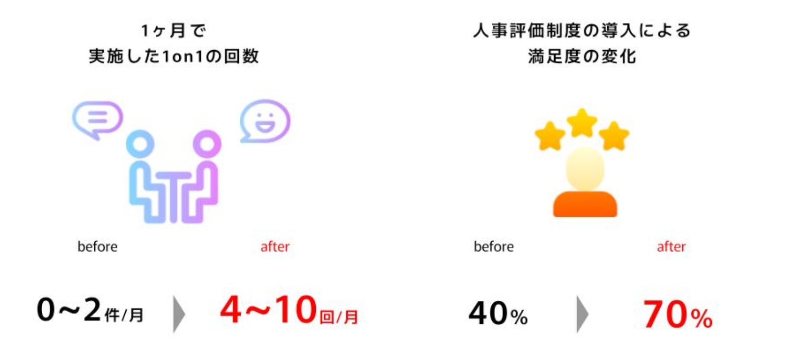 ご導入いただいてから初めての四半期を迎え、定期的な1on1と四半期での評価を実施いただきました。