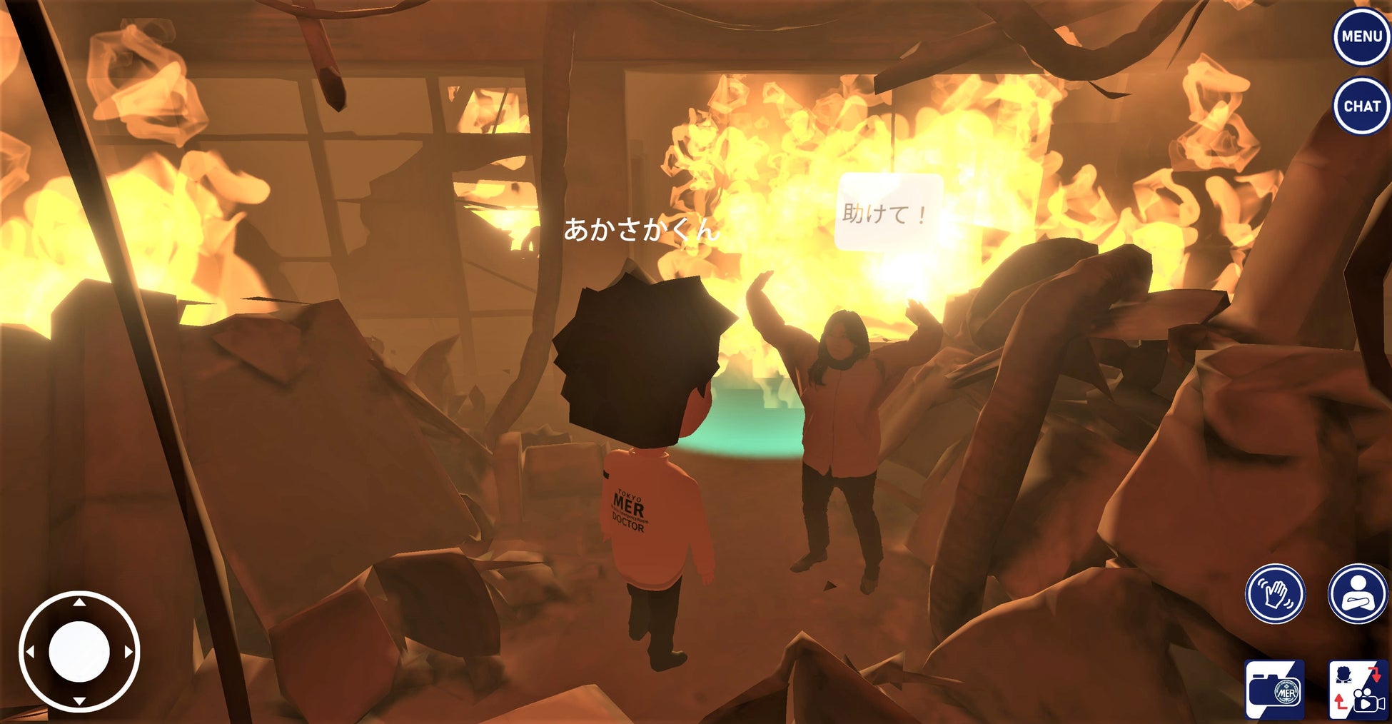 3Dスキャン技術を融合させ、実際のデータを使用した立体映像を元に構築された唯一無二のメタバースである『ZEXAVERSE』上で、MERチームのスタッフルームや、火災現場などを再現した3D空間を構築。