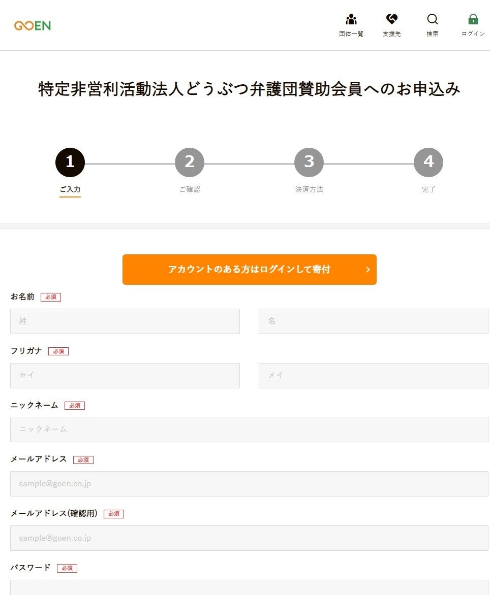 「賛助会員募集」よりGOEN申し込みページへ移動