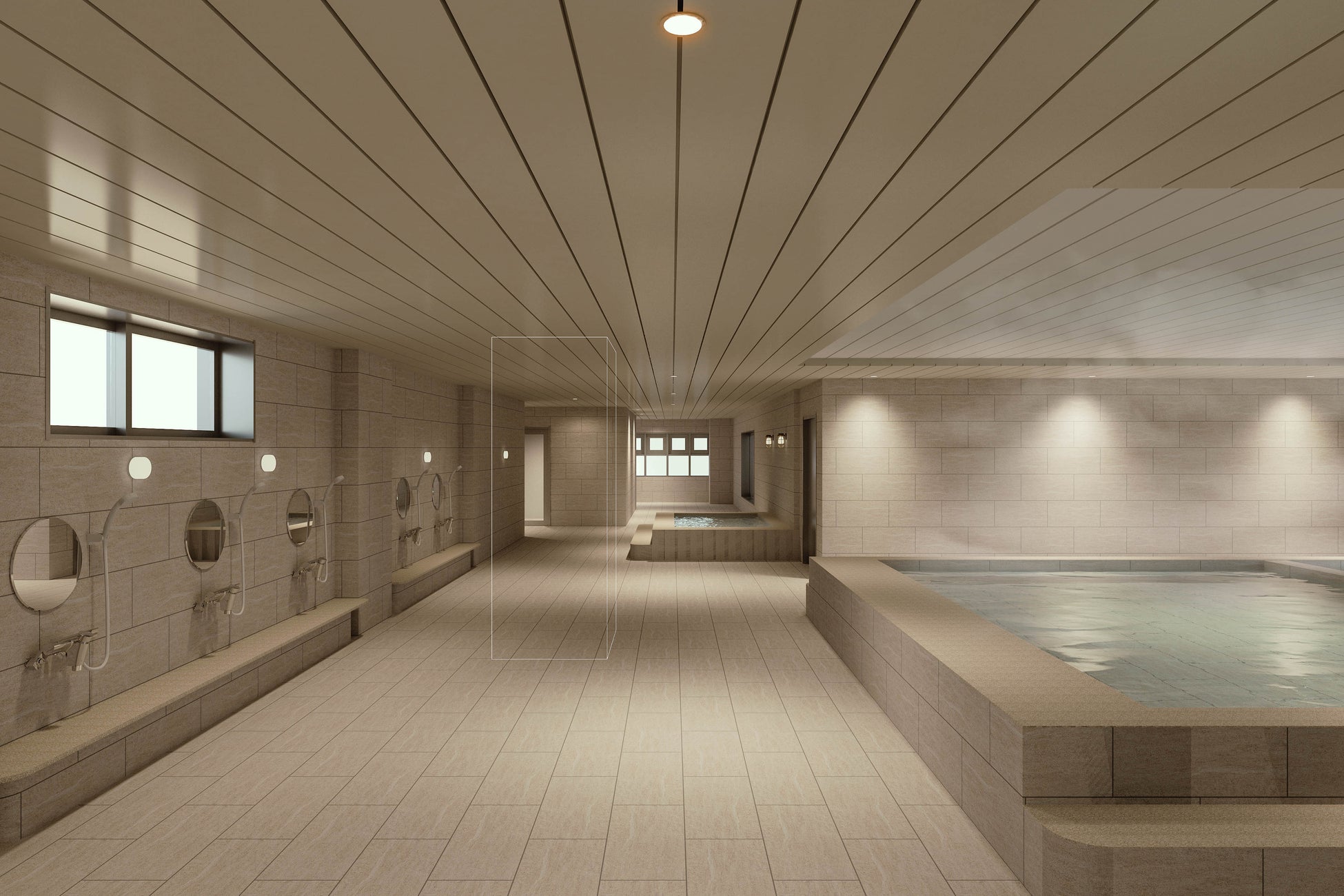 白を基調とし外光を取り入れた浴室は、男性と同様の大きさを誇りゆったりできる温浴槽をご用意。美容効果のある「高濃度炭酸泉」や「日替わり湯」で、リフレッシュ。心身ともに潤い、特別なひとときをお過ごしください。