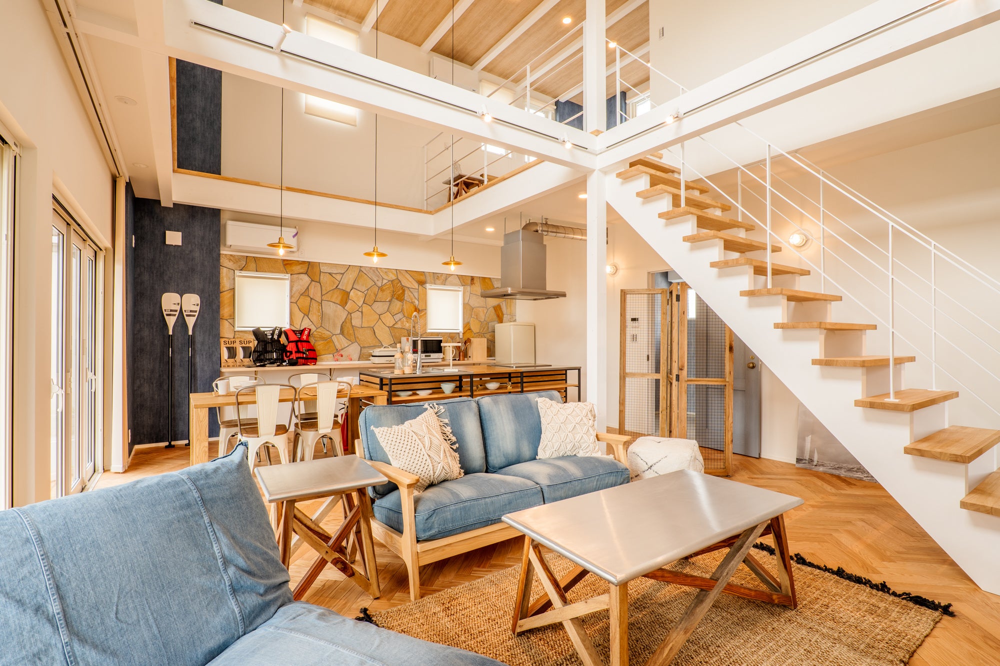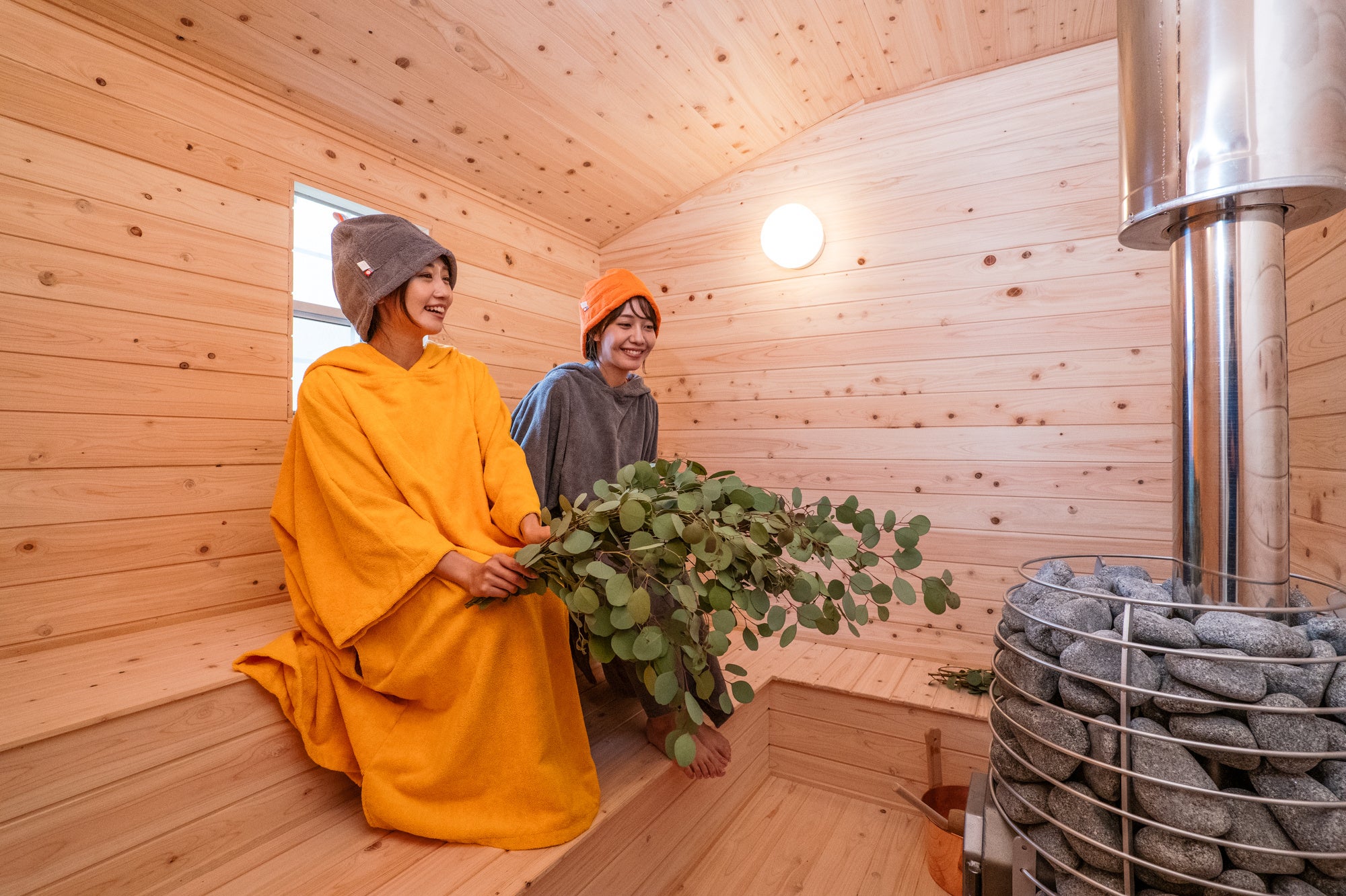 ナチュラルに仕上がったお部屋で、美容・健康を高めたい方にぴったり。北欧さんの本格的ロウリュウサウナで体をリフレッシュした後はヨガで体内環境を整えてください。インストラクターつきエアリアルヨガ(事前予約性)にも挑戦できます。