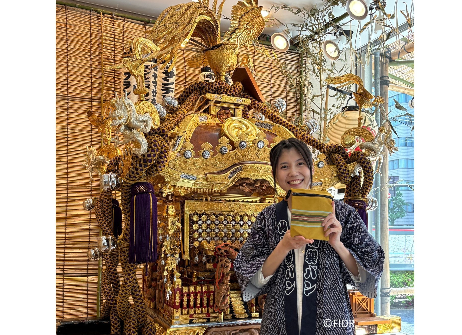 神田祭の宮入である5月10日、11日は、神田明神周辺企業の社員も多く神輿を担ぐ。岩本町三丁目町会に属する山崎製パン株式会社から参加する社員が身に着ける貴重品入れポシェットは、ベトナムの伝統手工芸品。国際協力NGO・公益財団法人国際開発救援財団(略称FIDR/本部:千代田区/代表:理事長 飯島延浩)の支援を受けて、少数民族の女性たちが製作した。同社がこのポシェットを購入することで、現地の生産者支援と日越国際文化交流が実現する。