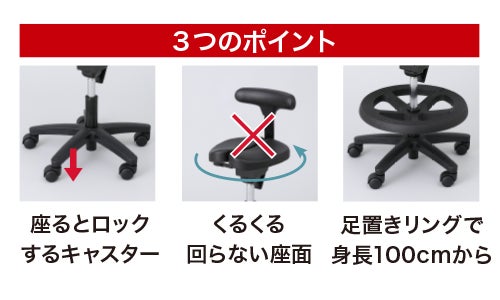キャスターや座面を動かして遊んでしまいがちなお子様のために考えられた特別仕様。