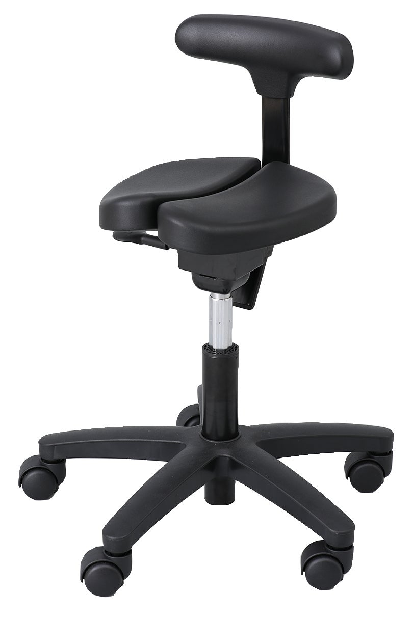 キャスターは体重がかかるとロックされ、座面は回転しない固定式。