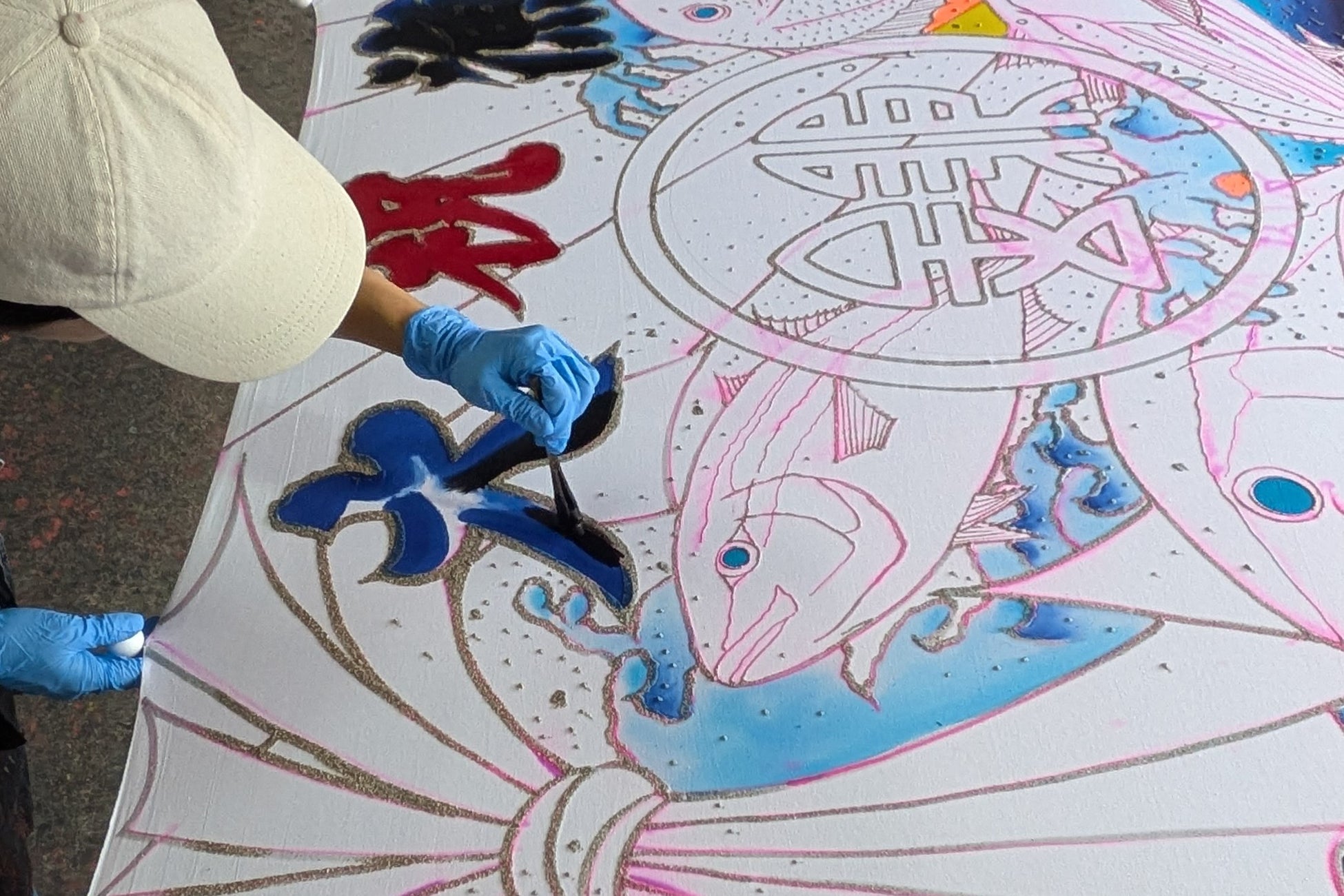伝統的な印染めで、大漁旗などをつくる「アキノ染色工芸」が来場。オリジナルで魚の染型手ぬぐいをつくるワークショップを行います。今回は、オリジナルで魚の型を用意してもらっています、お楽しみに!