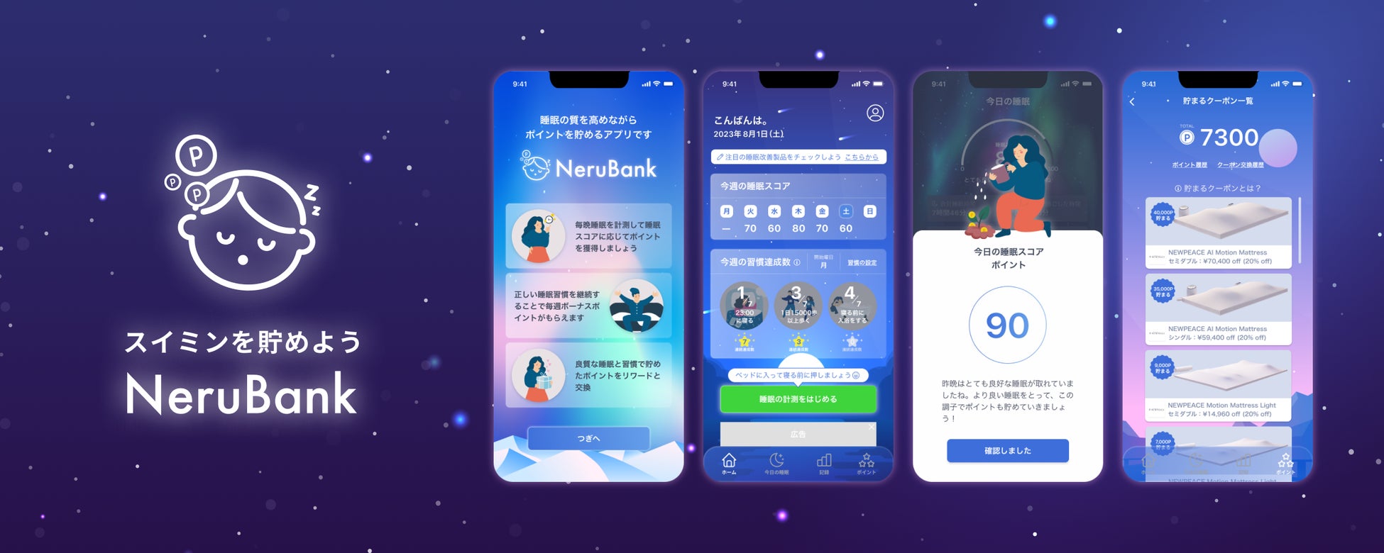 ポイ活×睡眠改善サポートアプリ「NeruBank」が睡眠を改善するスリープテック製品で注目のブランド「NEWPEACE」と連携した「貯まるクーポン」をリリース