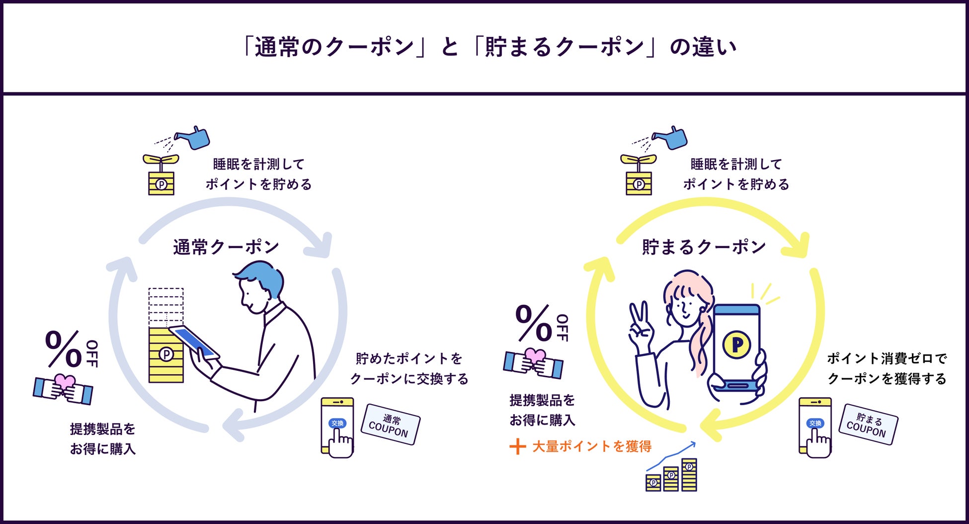 アプリユーザーの睡眠改善活動をリワードする「貯まるクーポン」