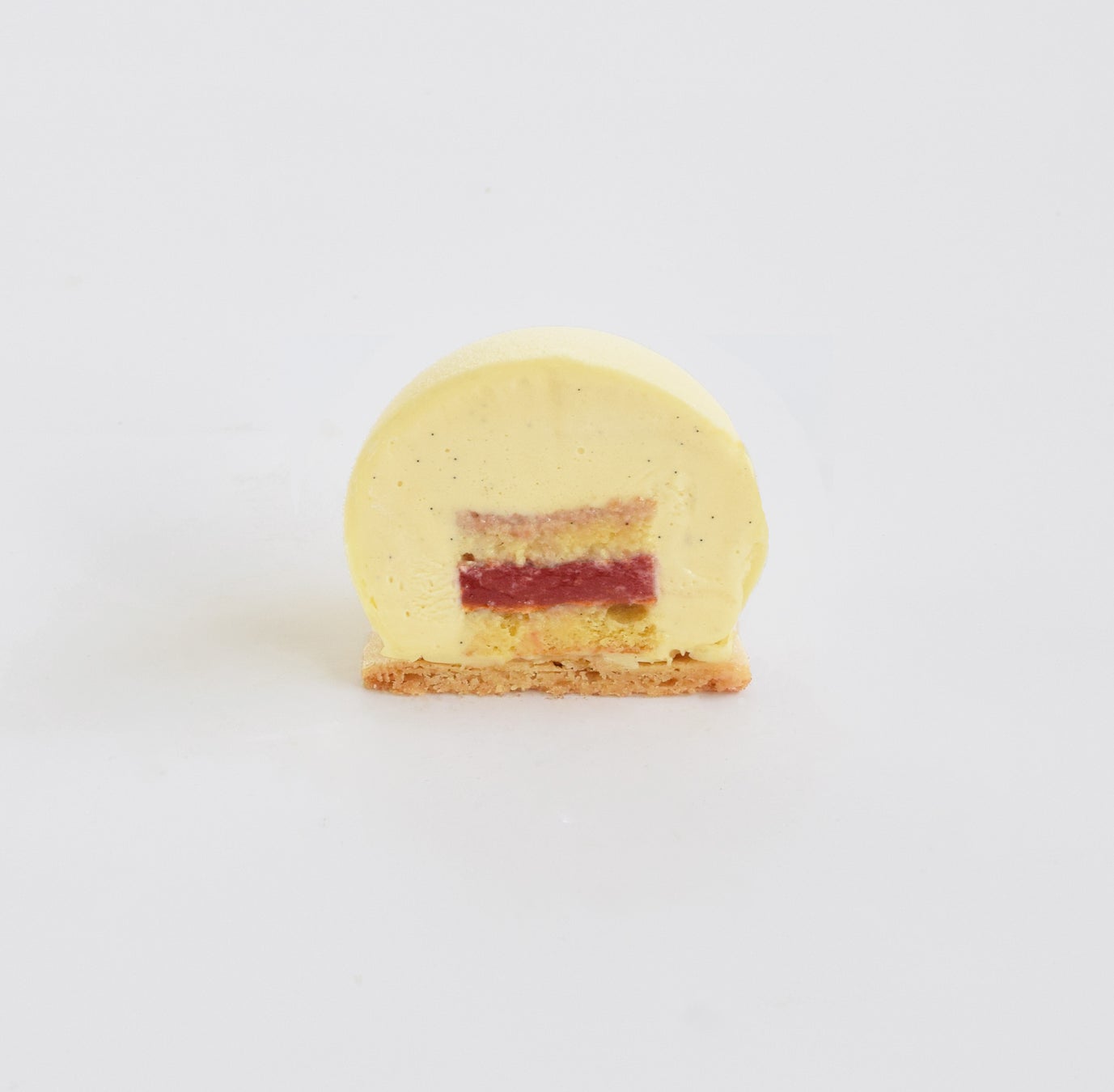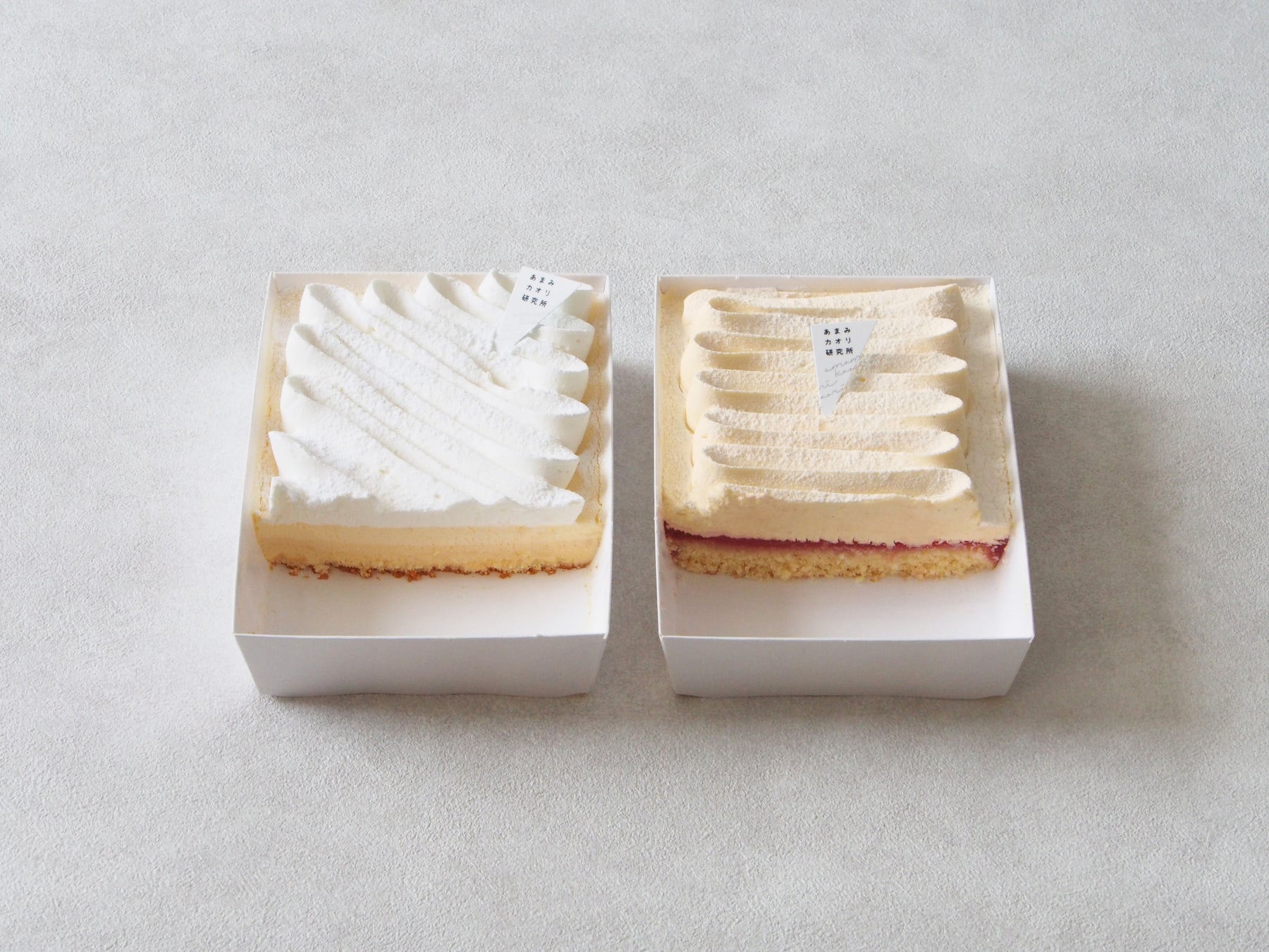 甘さを控えたムース上のバニラクリームと、スポンジと、甘酸っぱい苺ジュレの3層で、ショートケーキの魅力をぎゅっと詰め込んだスイーツ。あまみカオリ研究所で、一番人気のベースケーキです。