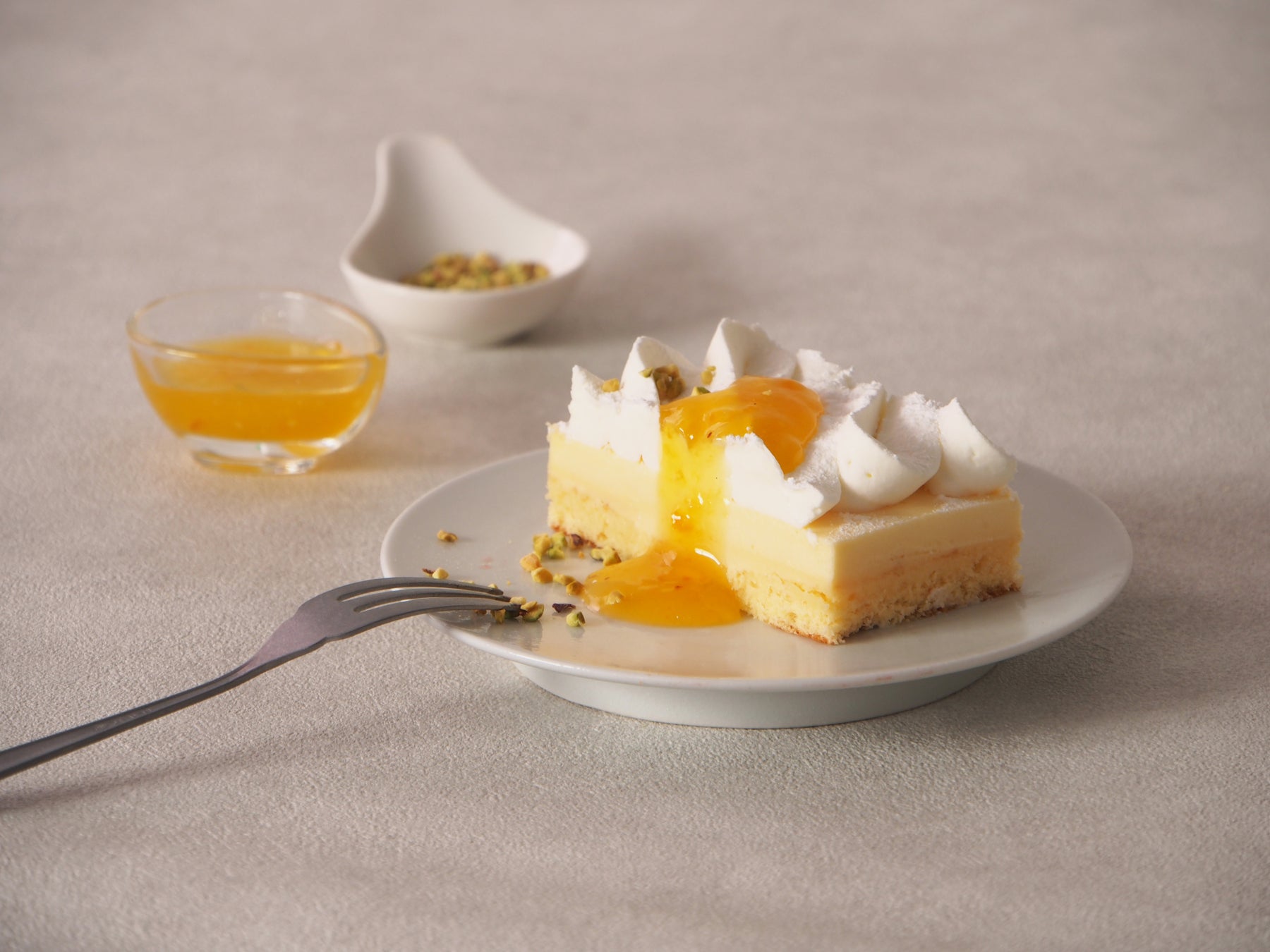 ベイクドチーズケーキのような濃厚な層と、優しい口当たりのなめらかなチーズムースの層で、チーズ好きには堪らないスイーツに仕上げました。どんなフレーバーとも相性のよい、ベースケーキです。