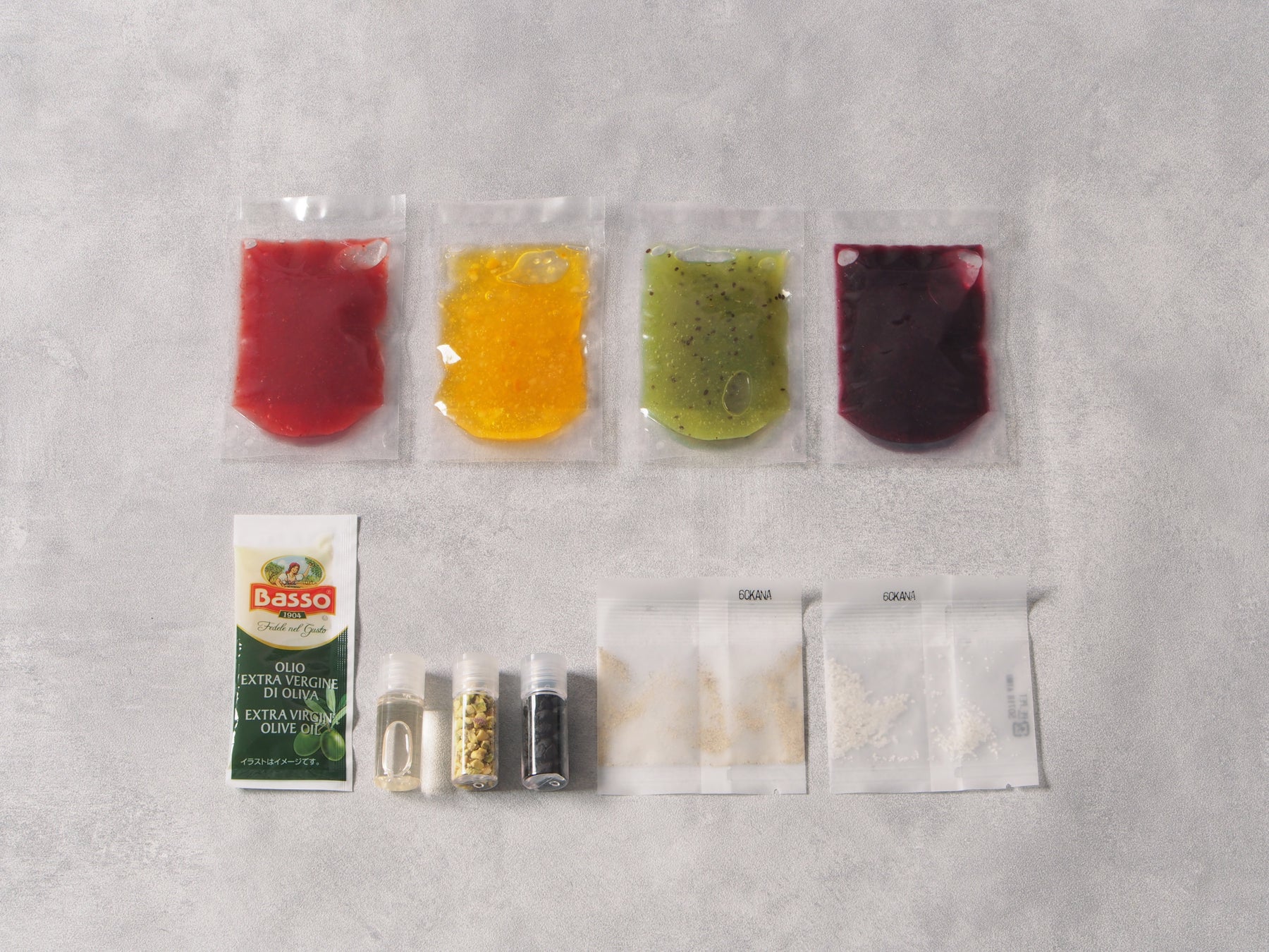 こちらのキットには、フルーツソース4種、フレーバーは8種がセットになっています。