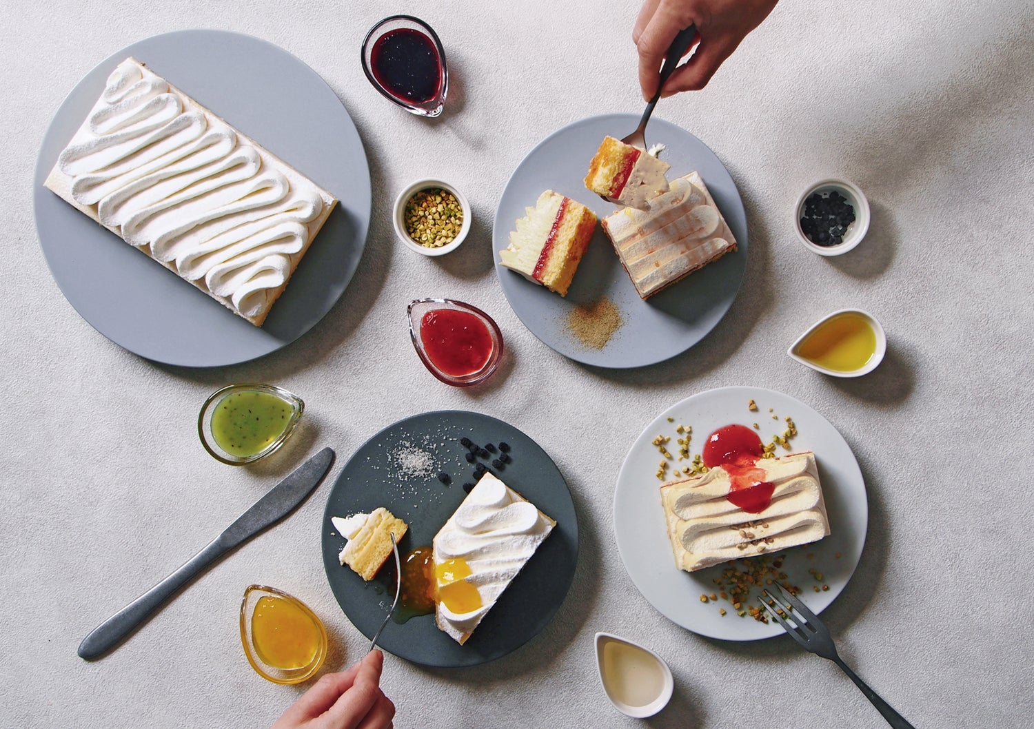 あまみカオリ研究所の提供しているマリアージュスイーツとは、“掛け合わせ”を楽しむ体験型のスイーツです。ベースのケーキに、フルーツソースやフレーバーをかけることで、味や香り、食感の変化をお楽しみいただけます。