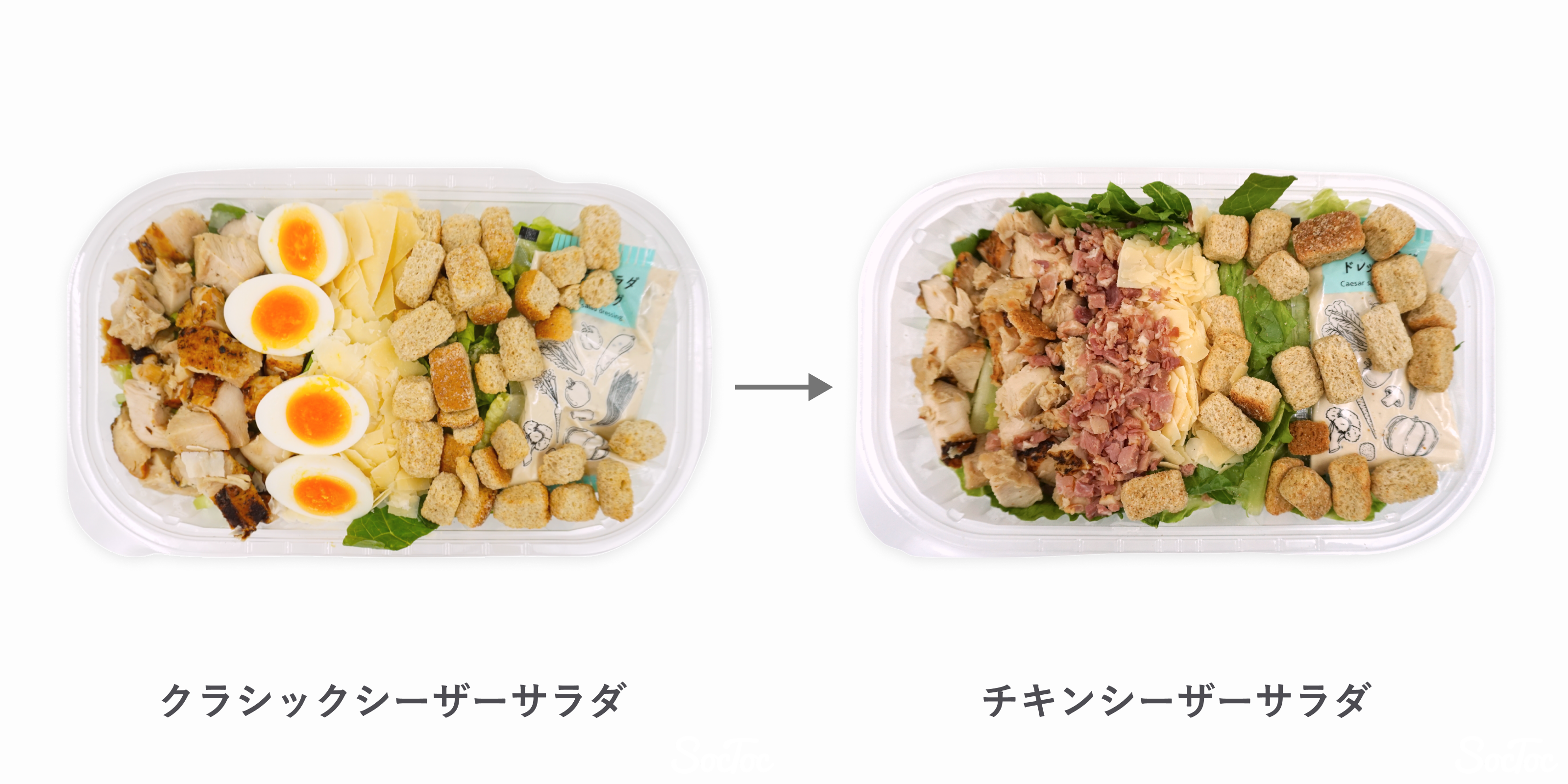 5月頃に急激な卵の高騰がありましたが、通年商品のクラシックシーザーサラダの代わりにチキンシーザーサラダ(復刻商品)の販売がありました。