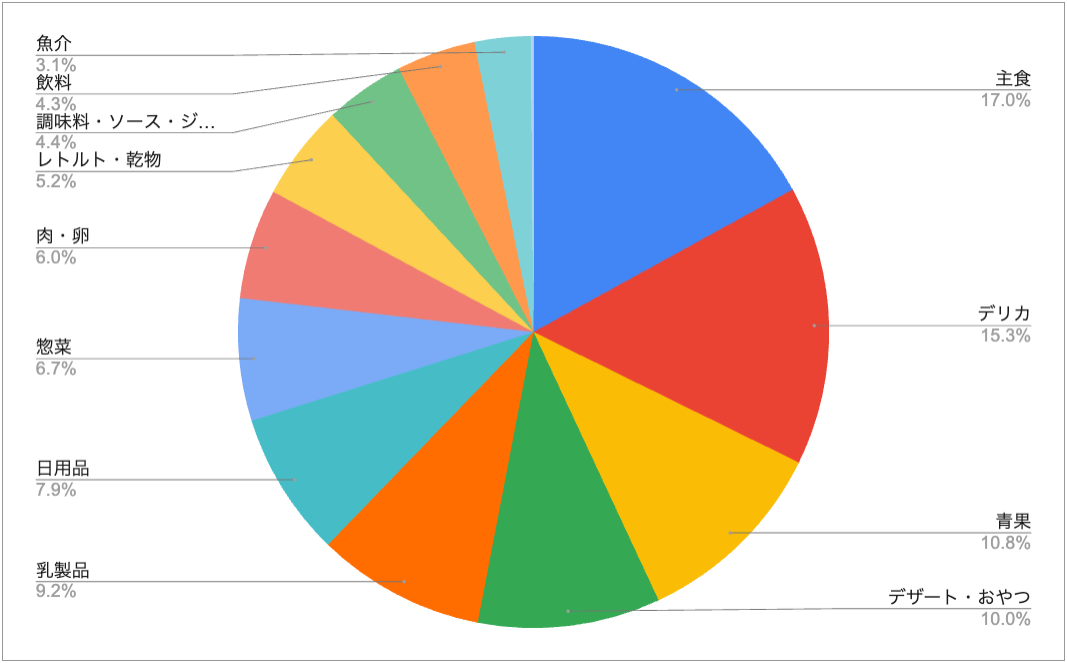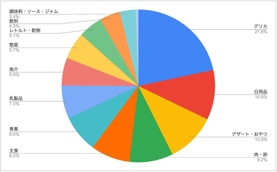 2023年4〜9月間の売上から、カテゴリごとに金額の割合を集計しました。