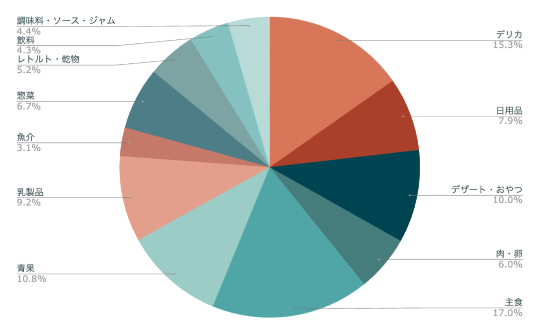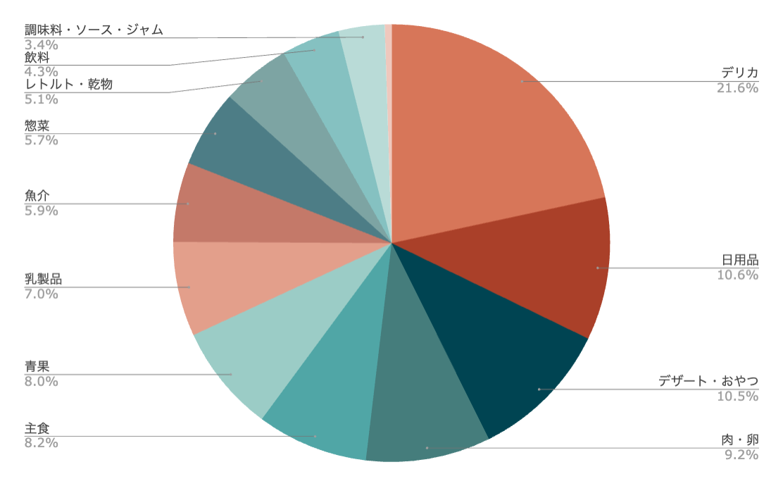 複数回ご利用いただいている方のご注文内容は、パーティーなど特別な日のお買い物というよりは普段の日のお買い物に近く、野菜やきのこ、卵、牛乳などが人気です。