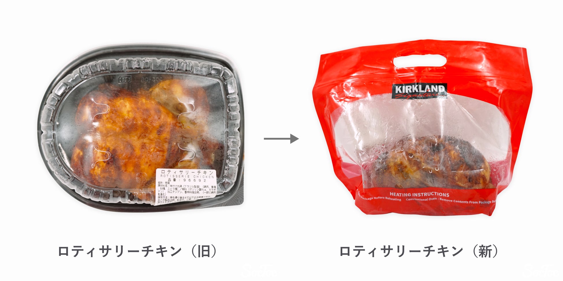 ・デリカコーナー ロティサリーチキン: プラ容器からジッパー付き袋へ