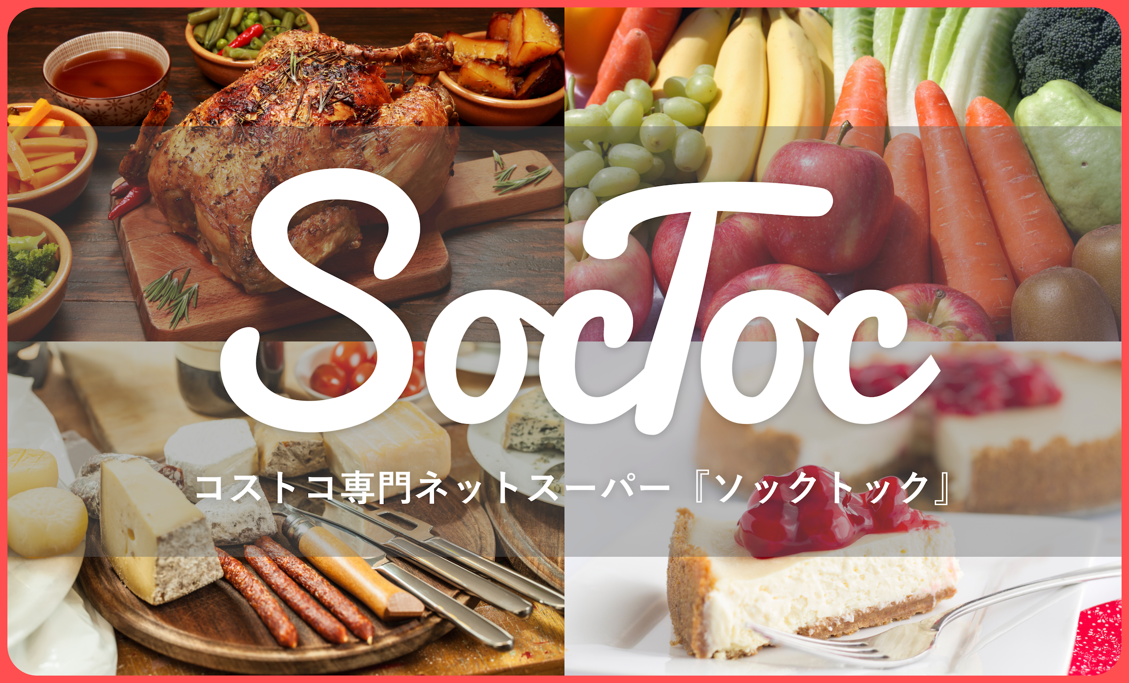 SocTocは、会員制倉庫型店コストコで人気のデリやベーカリー、精肉・鮮魚といった生鮮食品を購入することができる「コストコ専門ネットスーパー」サービスです。スマホから注文することで時間帯指定でコストコの商品をご自宅までお届け。コストコ会員でなくても年会費0円で利用可能です。「コストコの商品は量が多くて購入が難しい」というニーズに対応し、独自に小分け・詰め合わせの商品も提供します。