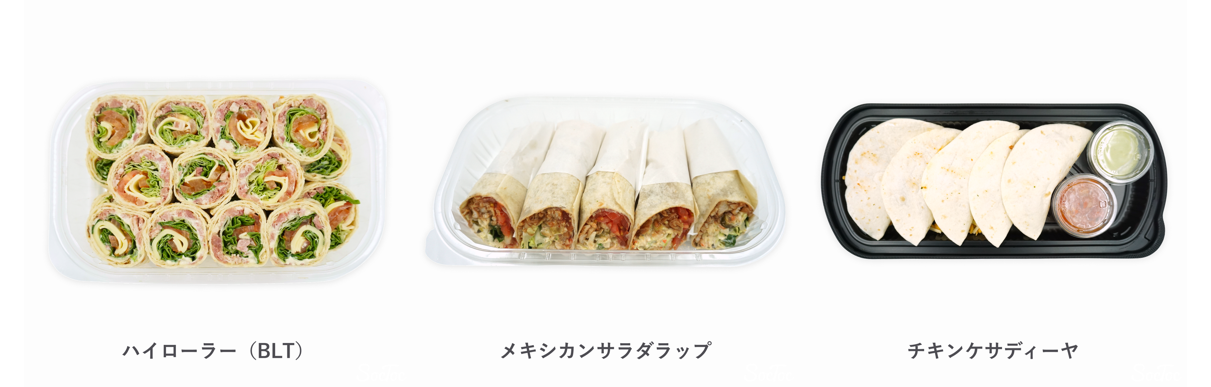 固定価格で販売されていたデリカのうち、ハイローラー、メキシカンサラダラップ、チキンケサディーヤのデリカが従量販売に切り替わりました。※価格ベース(内容量目安)は従来通りです。